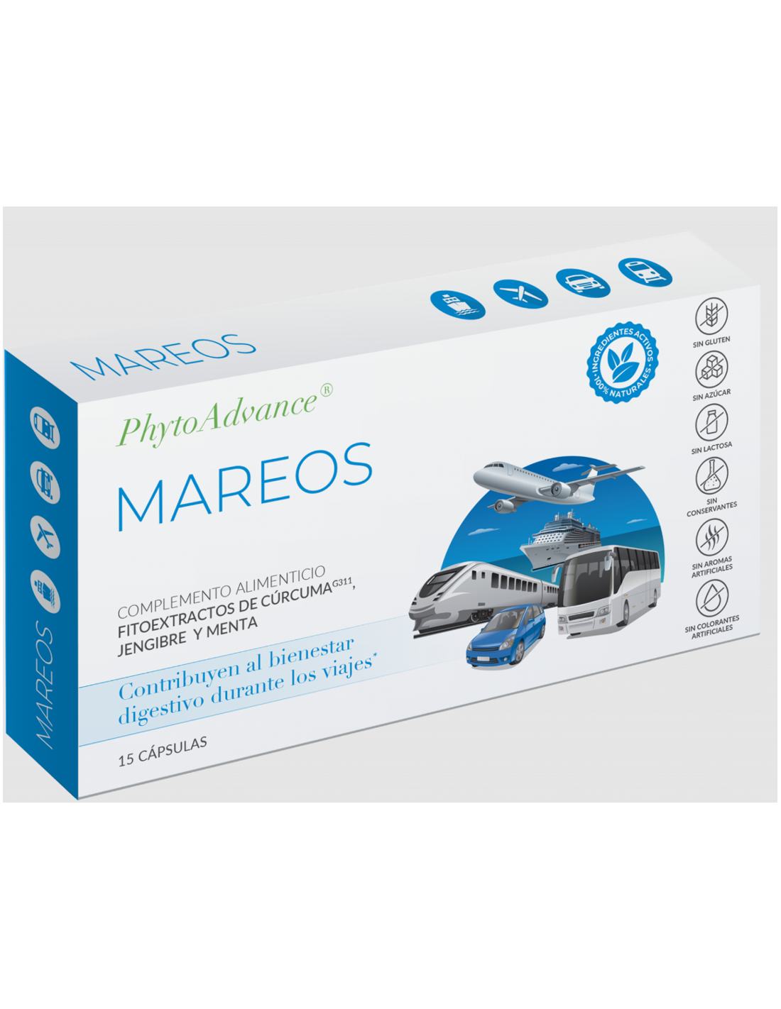 Complemento alimenticio formulado con fitoextractos en forma de cápsulas. La cúrcuma y el jengibre contribuyen a un normal mantenimiento digestivo, y pueden resultar de utilidad en caso de sensación de malestar (vómitos y mareo) al utilizar un medio de transporte. De alta biodisponibilidad.