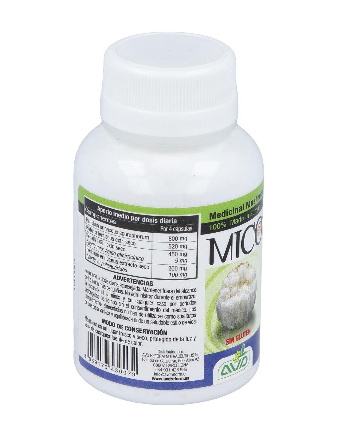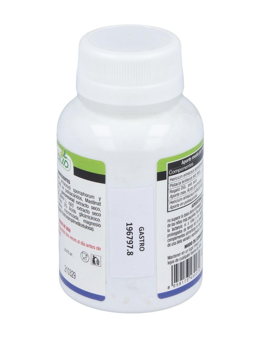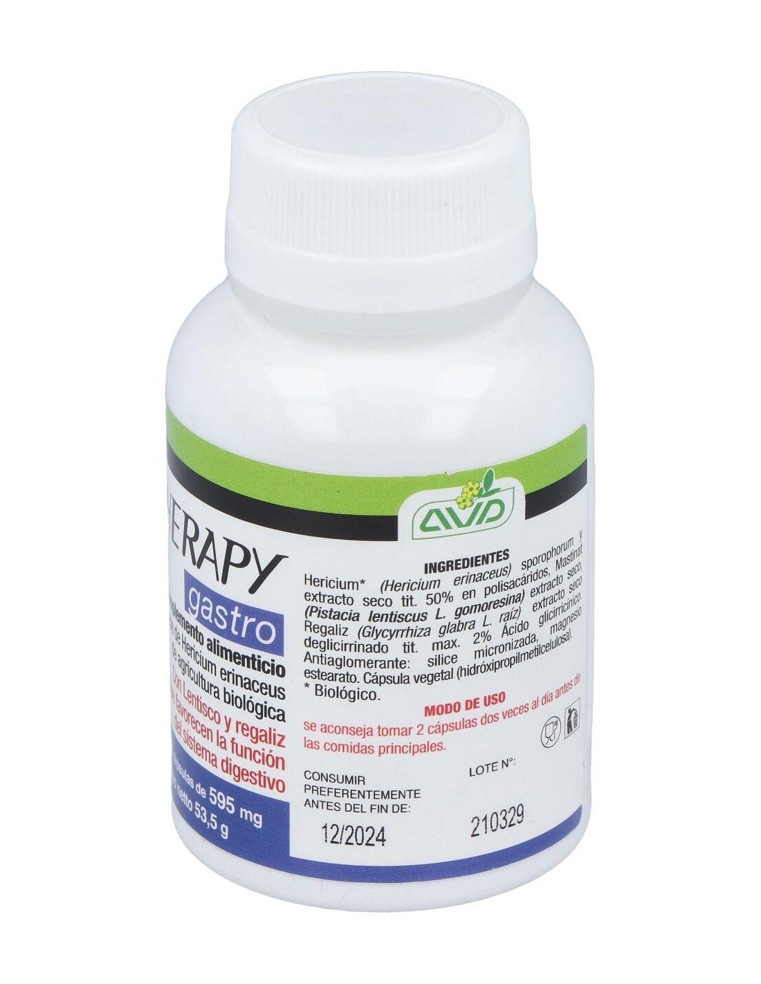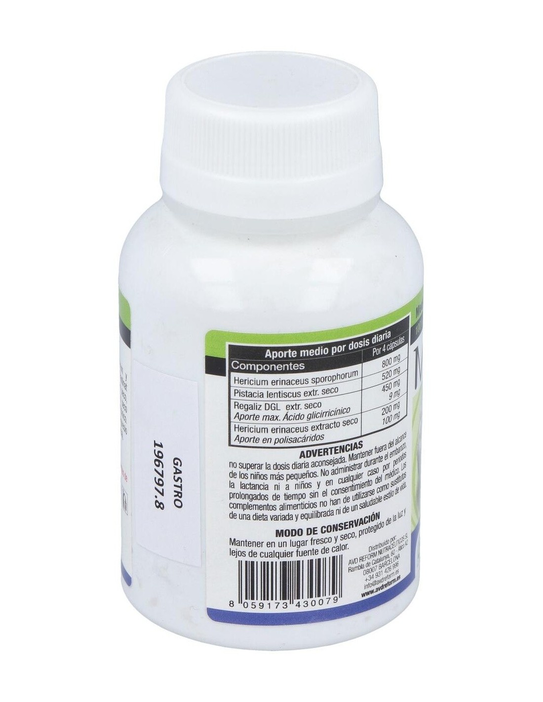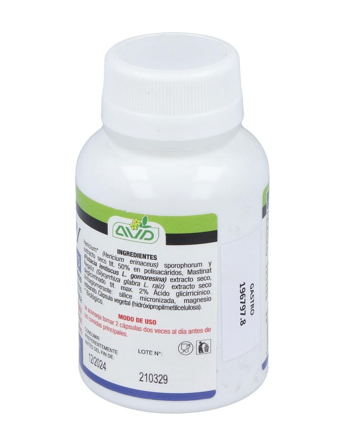 Complemento alimenticio en forma de cápsulas, elaborado a base de extracto de hericium erinaceus, o melena de león, procedente de cultivos ecológicos, además de extractos de lentisco y regaliz, que favorecen la buena funcionalidad del sistema digestivo.Contiene propiedades antiinflamatorias, antibacterianas y cicatrizantes, que promueven la regeneración de la mucosa gastrointestinal y ayudan a disminuir el ardor y el reflujo esofágico.
