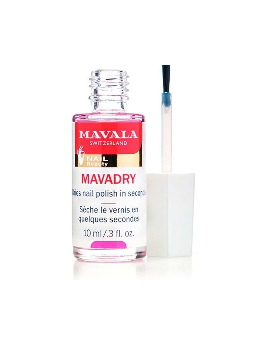 Después de la última capa de esmalte, esperar 1 minuto y aplicar MAVADRY en toda la superficie de la uña. En 1 minuto, el esmalte de uñas estará seco al tacto con un aspecto brillante.