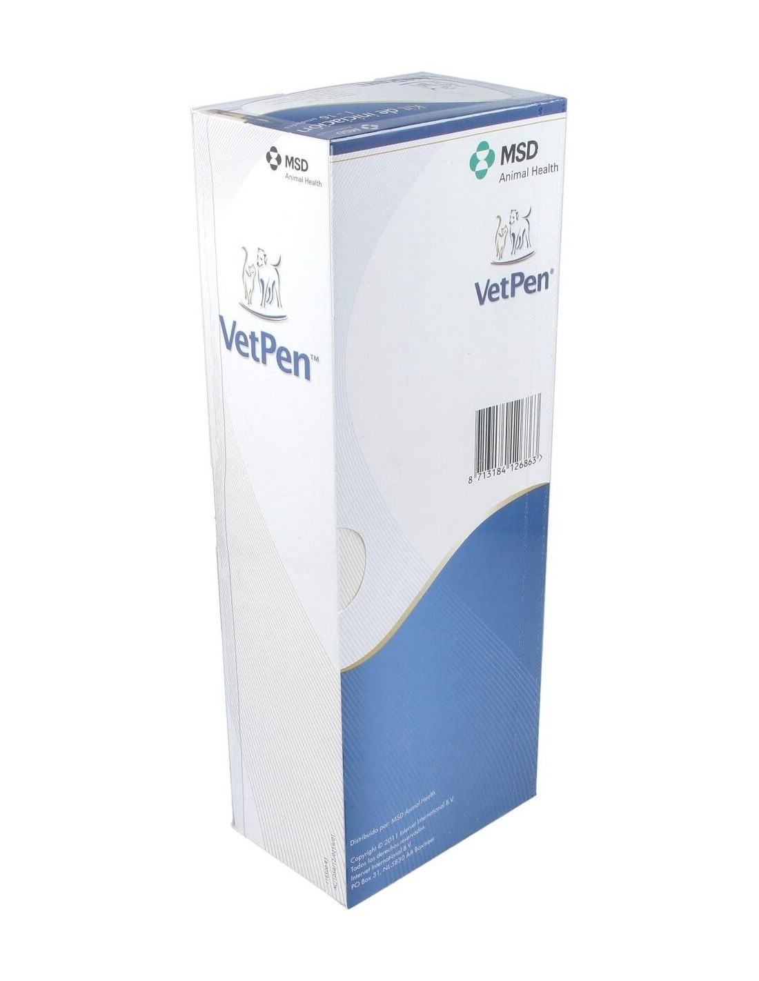 VetPen: Adaptador de dosis para facilitar la selección de la dosis precisa. Botón de liberación deslizante que puede acoplarse para facilitar la administración. Las agujas de 29G/12mm están provistas de un recubrimiento de silicona.