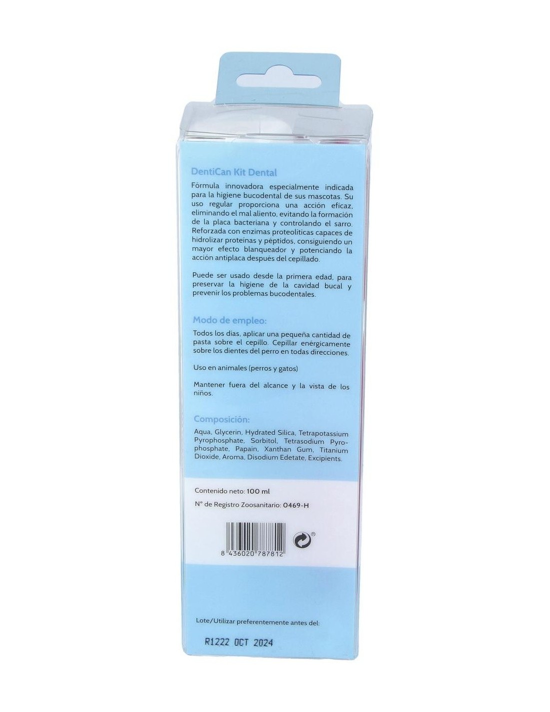 Composición Pasta: Glicerina, Sílica hidratada, Pirofosfato tetrapotásico, Sorbitol, Papaína, Pirofosfato tetrasódico, Goma xantana, Bióxido de titanio, Triclosán, Sacarina sódica, Aroma vainilla, Metilparabén sódico, EDTA disódico, Kaolín, Agua.