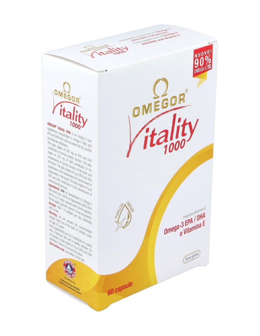 Con sus omega-3 en forma de triglicéridos, asegura una biodisponibilidad óptima y ausencia de olor y regusto tan típico de los suplementos de aceite de pescado más comunes. El EPA y DHA contribuyen al funcionamiento normal del corazón con una ingesta diaria de 250 mg. La vitamina E contribuye a la protección de las células del estrés oxidativo.