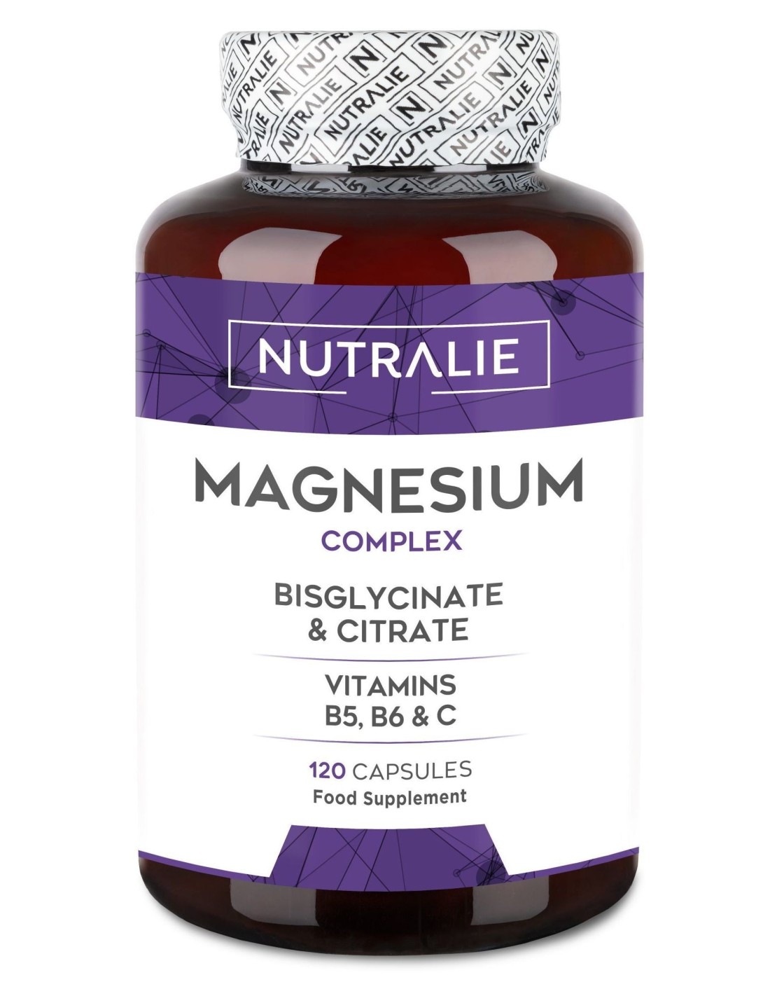 Nuestro Magnesio Complex se presenta en forma de bisglicinato y citrato. Contiene una alta biodisponibilidad, permitiendo que nuestro organismo aproveche la máxima cantidad posible de magnesio y que, por tanto, alcance su punto máximo de acción. Inspirados en la naturaleza y persiguiendo la calidad y la excelencia, en nuestro producto, dicho mineral se ha combinado con las vitaminas C y B6, que complementan las propiedades saludables del magnesio.Gracias a la combinación del magnesio con la vitamina C, esta última contribuye a la formación normal de colágeno para el funcionamiento normal de los huesos y cartílagos. El complemento de Magnesio Complex de Nutralie, gracias a la vitamina C, presente en su fórmula, contribuye al funcionamiento normal del sistema inmunitario durante el ejercicio físico intenso y después de este, por lo que esté suplemento de energía te dará ese extra para tus entrenamientos y recuperaciones.Composición activa por 3 cápsulas: