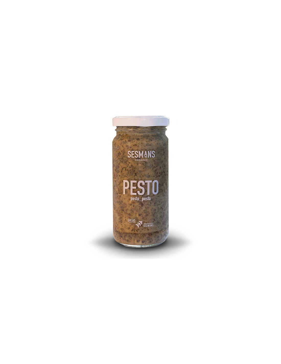Aceite de oliva*, agua, albahaca* 21%, piñones*, vinagre de manzana*, sal, almidón de maíz*, harina de garbanzos* y acidulante: ácido láctico.