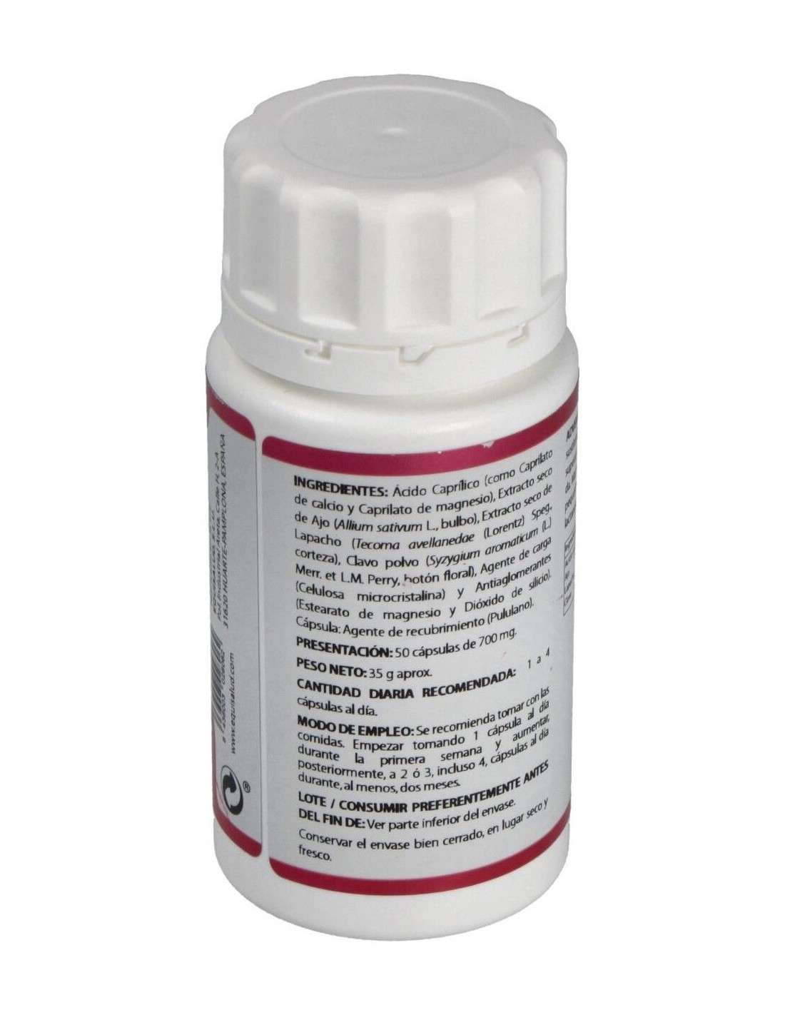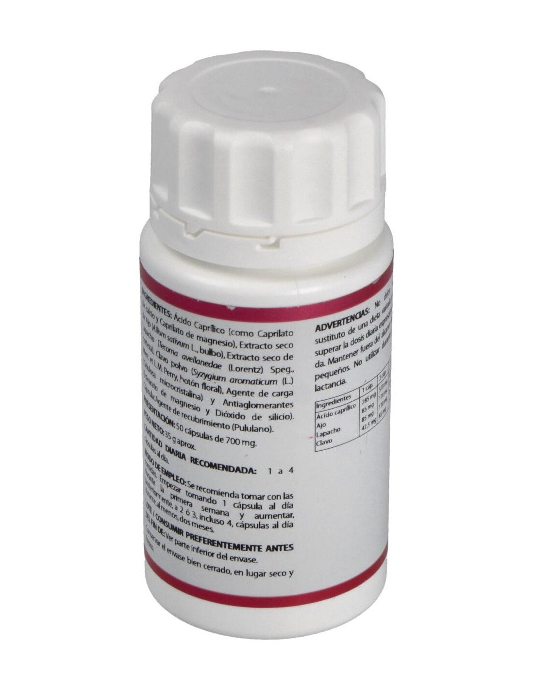 Las cándidas, de diversas especies, están en la piel, en el aparato digestivo o el tracto genitourinario. Su función es absorber metales pesados e impurezas, los restos de carbohidratos mal digeridos, etc, consiguiendo con ello un equilibrio, junto con las bacterias existentes. Una disminución del sistema inmunológico puede crear un desequilibrio en la flora intestinal, así como los antibióticos, la cortisona, los azúcares en exceso, con la consiguiente abundancia de cándidas, que podrían entonces proliferar y se dañinas. La candidiasis puede ser local o sistémica, dando lugar en ese caso a un problema grave, con un gran abanico de síntomas bastantes confusos y difíciles de diagnosticar. Entre ellos la fatiga crónica, malestar general, trastornos digestivos, debilidad inmune, alergias, hipersensibilidad a químicos, pueden ser los más resaltables.Ingredientes por cápsula:Triglicéridos de cadena media (MCT-CP8) en polvo, procedentes de aceite de coco, con un 65% de ácido caprílico, 500 mg. Envoltura: polisacárido de origen vegetal (pululano).Modo de empleo:Empezar tomando 1 cápsula al día durante la primera semana y aumentar, posteriormente, a 2 ó 3 cápsulas al día durante, al menos, dos meses.Presentación:Envase de 50 cápsulas.Recomendaciones y advertencias:No recomendado durante el embarazo y la lactancia. Apto para veganos.