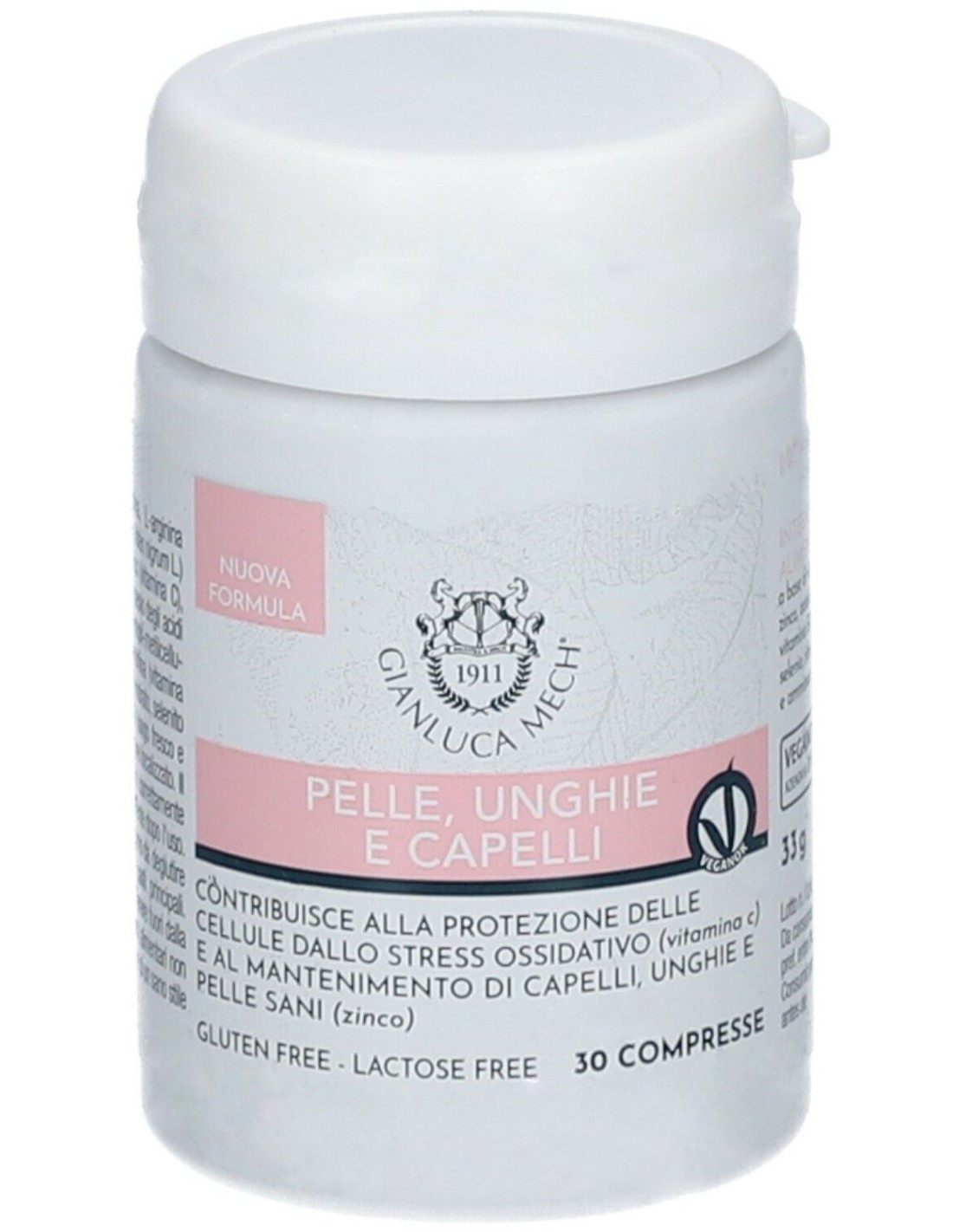 Cabello, Piel y Uñas de Gianluca Mech es un complemento alimenticio que promueve la belleza de los apéndices de la piel de forma natural. gracias a la