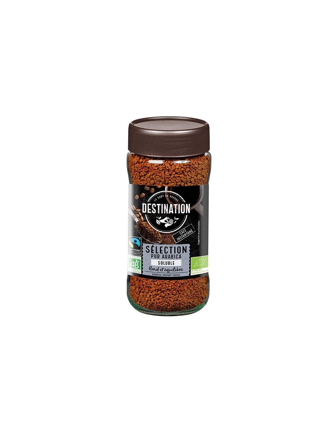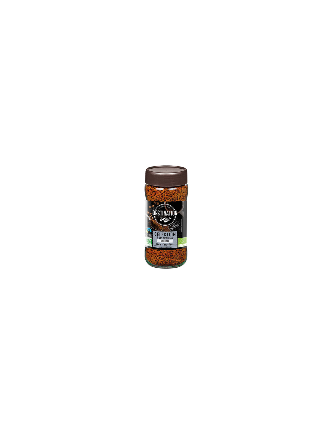 Café Soluble Puro Arabica Liofilizado Bio de Destination es un café procedente de agricultura ecológica. Redondo, ofrece una taza equilibrada con notas ligeramente tostadas.Características:
