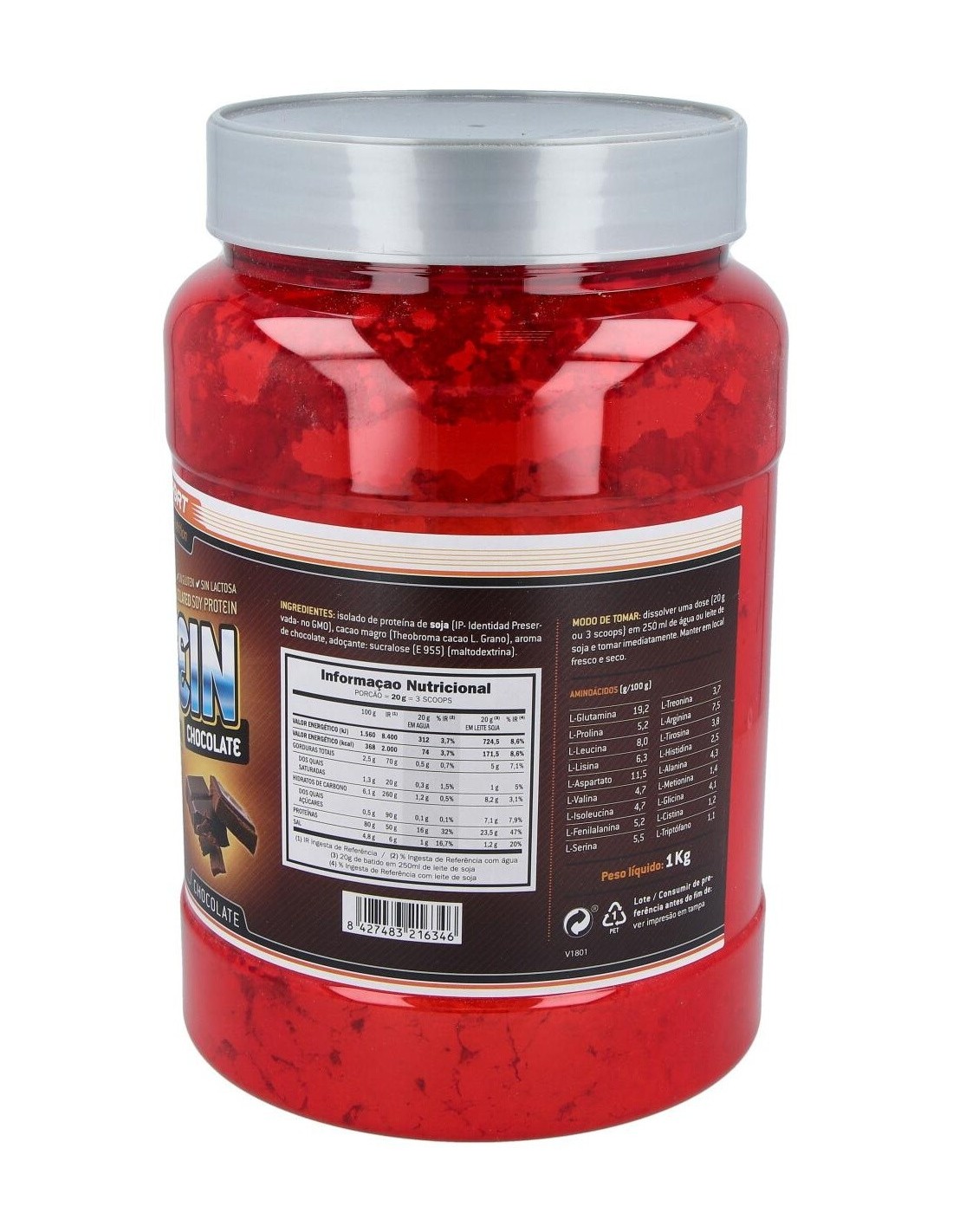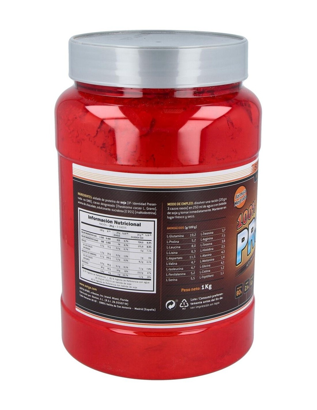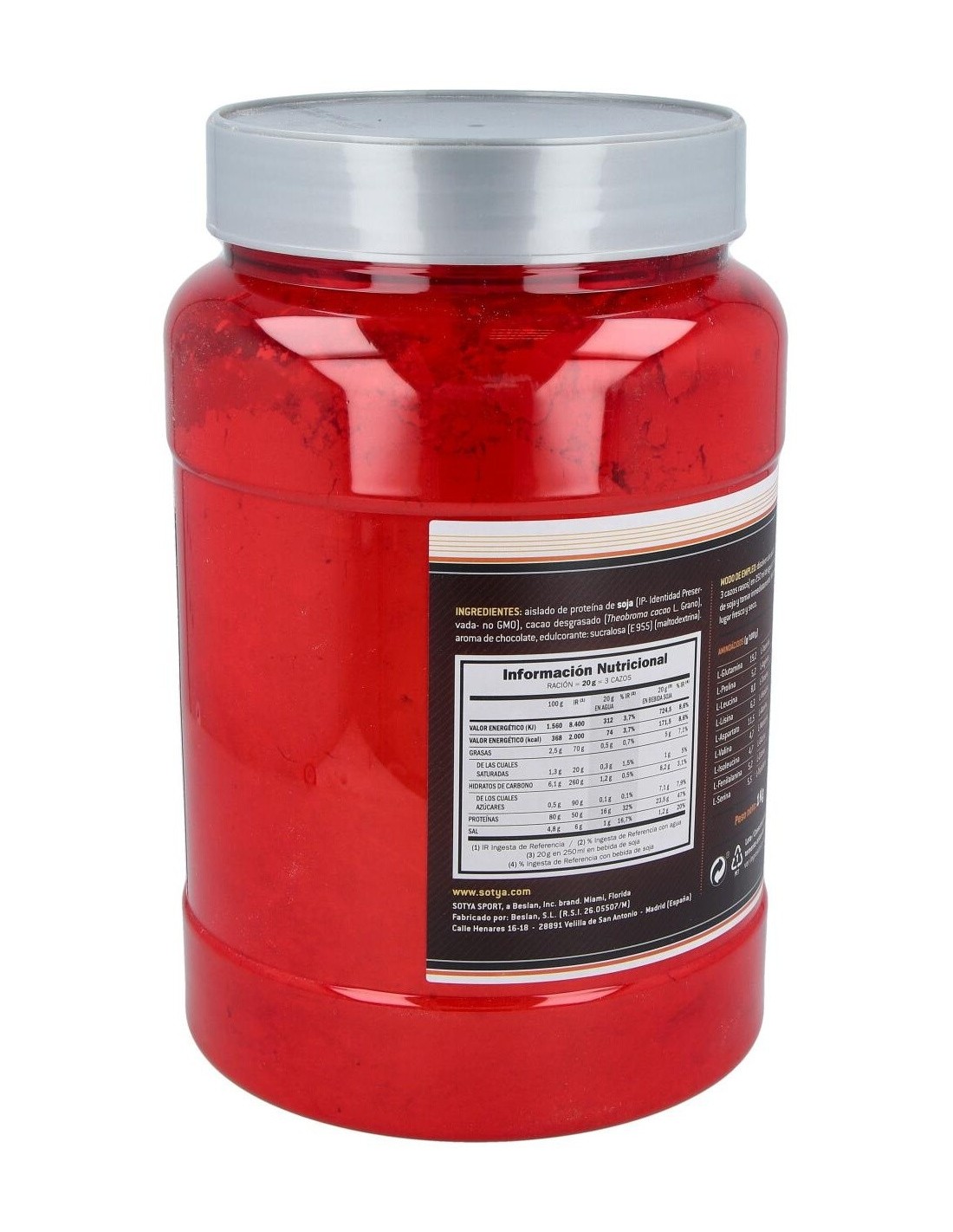 - Proteína de soja en polvo con sabor a chocolate, que aporta una fuente de aminoácidos para la recuperación y mantenimiento muscular.
