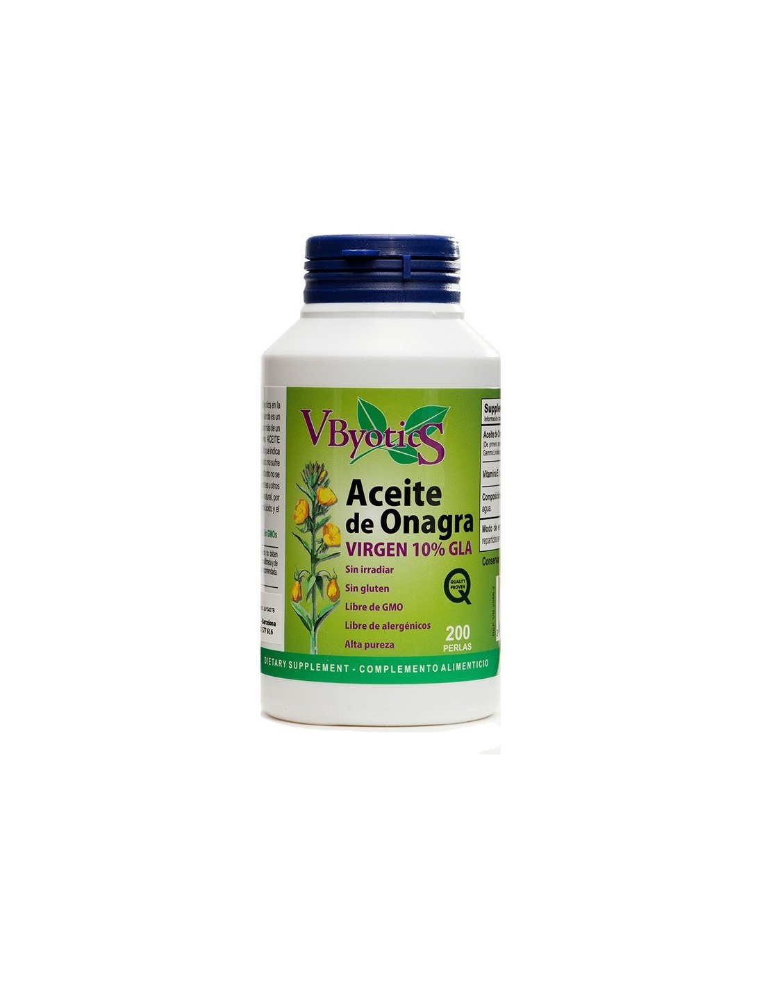 El aceite de onagra utilizado por Vbyotics en la elaboración de las perlas de gelatina blanda es un aceite de calidad especial, que asegura más de un 10% GLA y que se define como aceite virgen de presión en frío, lo que indica que tras su obtención mediante prensado no sufre ningún proceso químico posterior y por tanto no se utilizan disolventes, aditivos, antioxidantes u otros agentes sintéticos. Es 100% natural por lo que tiene un color ligeramente translucido y el sabor es algo más intenso.