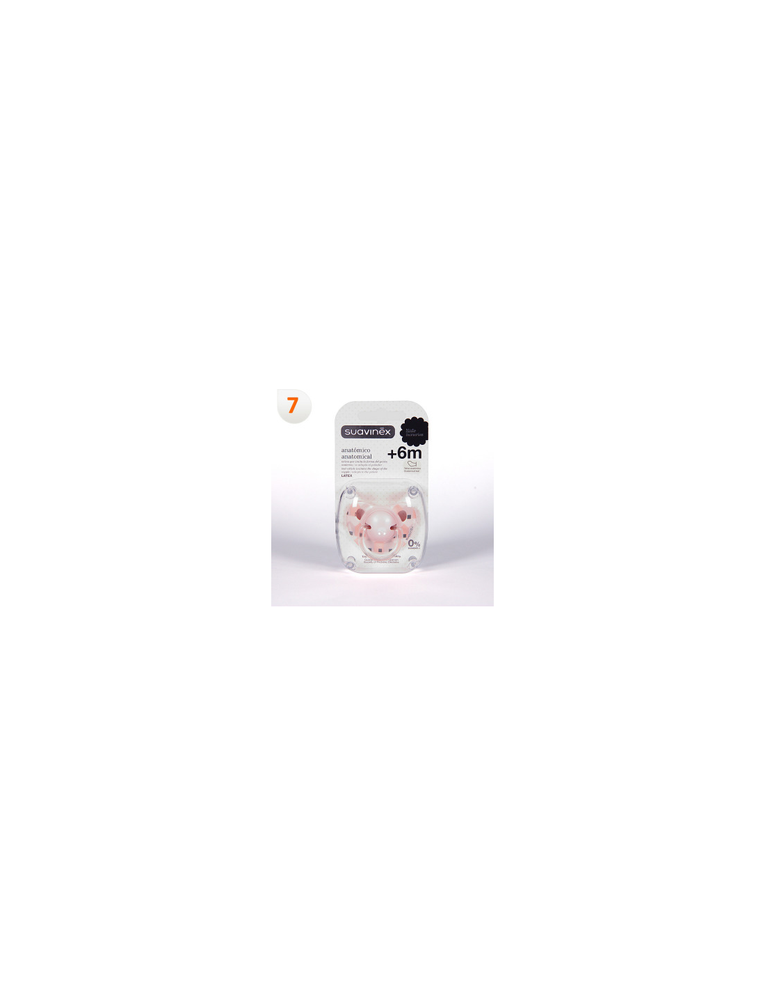Chupete con tetina anatómica que imita la forma del pezón materno durante la succión, adaptándose perfectamente al paladar. Avalada por la Sociedad Española de Odontopediatría. \ \ *El diseño y color pueden variar con respecto a la imagen.