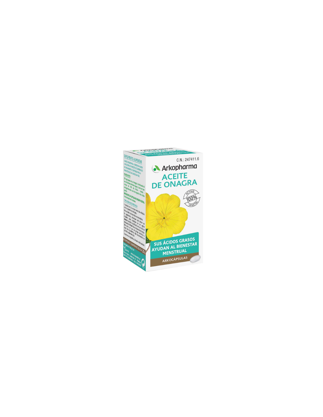 Aceite de semillas de onagra (Oenothera biennis L.). CÁPSULA 100% VEGETAL -Almidón modificado - Glicerol - Gelificante: carragenanos.