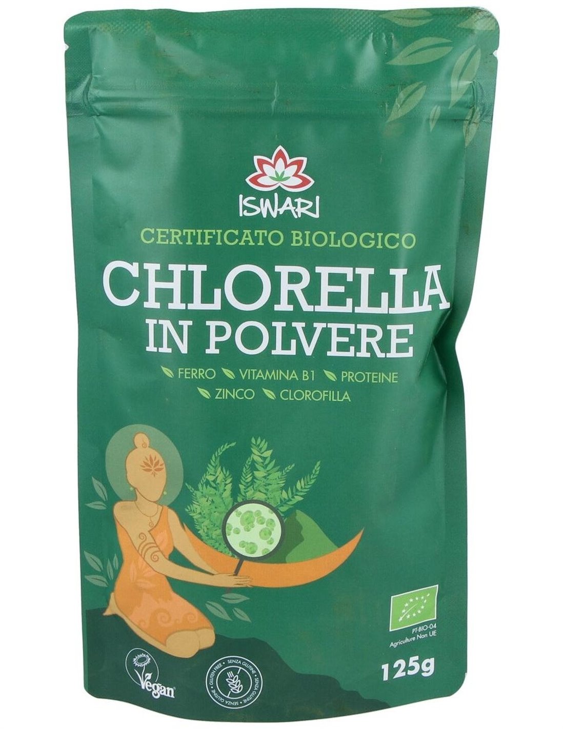 La Clorela es una micro alga verde unicelular, cuyo nombre deriva de su sorprendente cantidad de clorofila y es además una bomba nutritiva. La Clorela Iswari es ecológica, producida en las limpias aguas dulces de Mongolia, y tiene sus paredes celulares rotas, lo que proporciona una mejor absorción de los nutrientes. Ingredientes: 100% clorela en polvo. Beneficios: