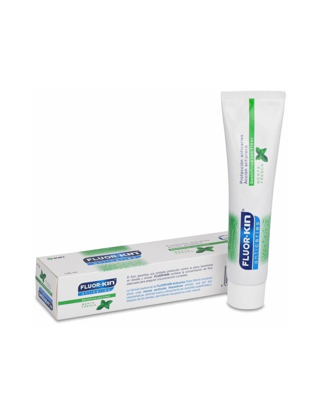 El flúor favorece la remineralización del esmalte dental y evita que la placa bacteriana se adhiera sobre las superficies dentales. Sabor menta fresca.