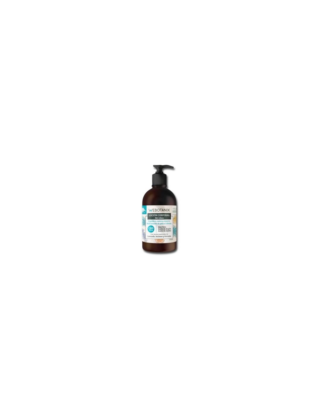 WEBOTANIXLoción corporal con CBD, aloe vera, aceite de jojoba, aceite de árgan y aceites esenciales de: Geranio, incienso y lavanda. Equilibra, nutre y repara. Ideal para hidratar la piel de la cabeza a los pies. Pensada para uso diario, la fórmula de esta loción corporal con CBD aúna la mejor selección de ingredientes presentes en la naturaleza para nutrir la piel de manera natural y libre de químicos. El 99.55% de los ingredientes son ecológicos. El cannabidiol es un ingrediente ideal para la piel. Gracias a sus propiedades calmantes puede ayudar a disminuir irritaciones en la piel. Además, sus propiedades antioxidantes ayudan a frenar el envejecimiento prematuro de la piel. Aloe Vera es un ingrediente muy utilizado en cosmética por sus propiedades calmantes y regeneradoras. Su uso continuado favorece una piel suave y tersa. Producto vegano. Con Certificación CAAE Cosmos Organic.