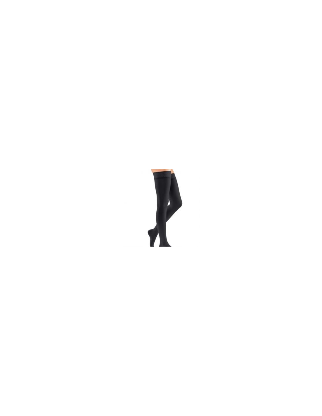 Mediven Plus AD es una media de compresión médica de punto circular con un aspecto opaco. Disimula las venas varicosas y las arañas vasculares y es cómodo de llevar incluso con muslos fuertes.