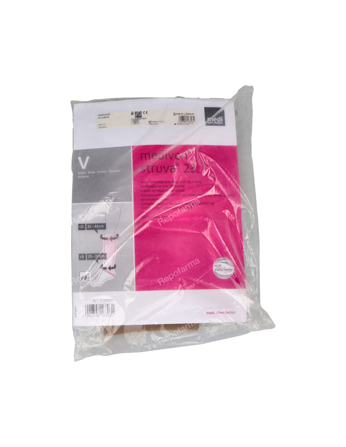 Las medias de vendaje tienen un campo de aplicación muy amplio para el tratamiento ambulatorio o en régimen de ingreso parcial de las trombosis en cirugía venosa y, en general, cuando se necesitan vendajes compresivos de las extremidades inferiores. Con una presión de 23 mmHg en el empeine, que va disminuyendo uniformemente hacia el muslo, mediven struva 23 es especialmente adecuada para la compresión breve directa posquirúrgica tras una intervención en las venas. Favorece el retorno venoso y evita la aparición de edemas y derrames sanguíneos.