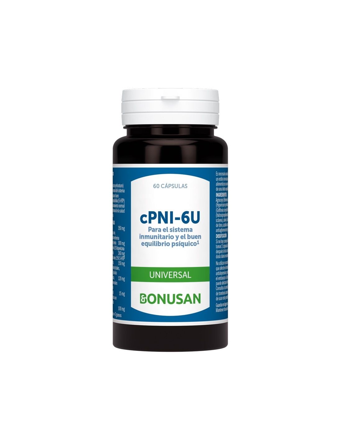 cPNI-6U de Bonusan es un complemento alimenticio compuesto de hierba de San Juan (Hypericum perforatum) contribuye al funcionamiento normal del sistem