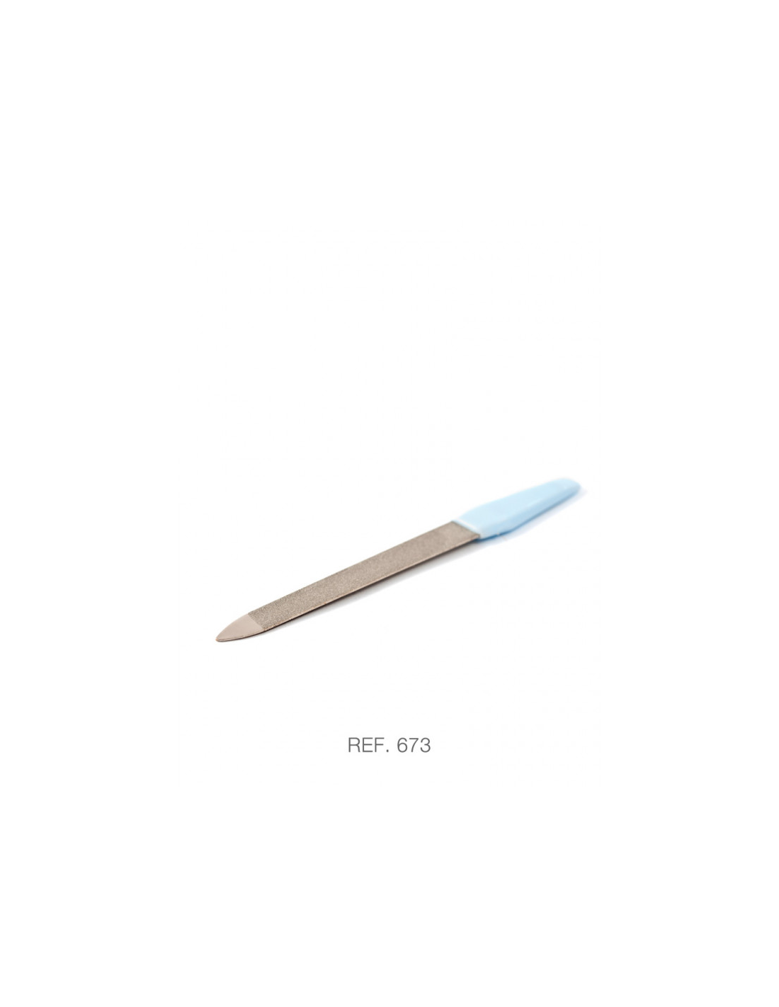 Lima de uñas de calidad profesional, con grano metálico de gran durabilidad, que permite limar y dar forma a las uñas. Diseñada para obtener un agarre óptimo y facilitar el uso, consiguiendo unas uñas de forma homogénea.