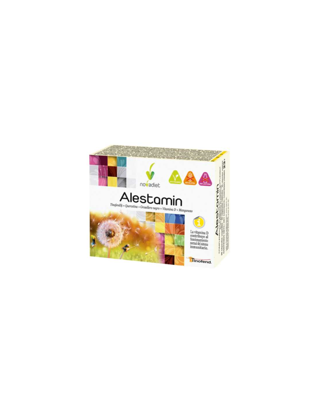 Ingredientes:Tinofend® (Tinospora cordifolia), Grosellero negro, Agente de carga (celulosa microcristalina), Quercetina, Antiaglomerantes (sales magnésicas de ácidos grasos, dióxido de silicio), Gluconato de manganeso, Vitamina D3 (colecalciferol). Cubierta: Agua, Hidroxipropilmetilcelulosa.Modo de empleo:Tomar 1 cápsula antes del desayuno y cena, con ayuda de agua.Presentación:Envase de 30 cápsulas vegetales.Recomendaciones y advertencias:Apto para veganos. No contiene gluten ni lactosa.