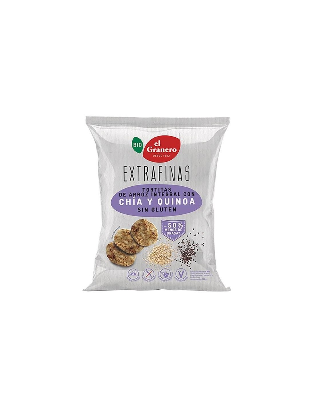 Extrafinas Tortitas De Arroz Integral, Chía Y Quinoa Sin Gluten Bio, 60 G de El Granero Integral