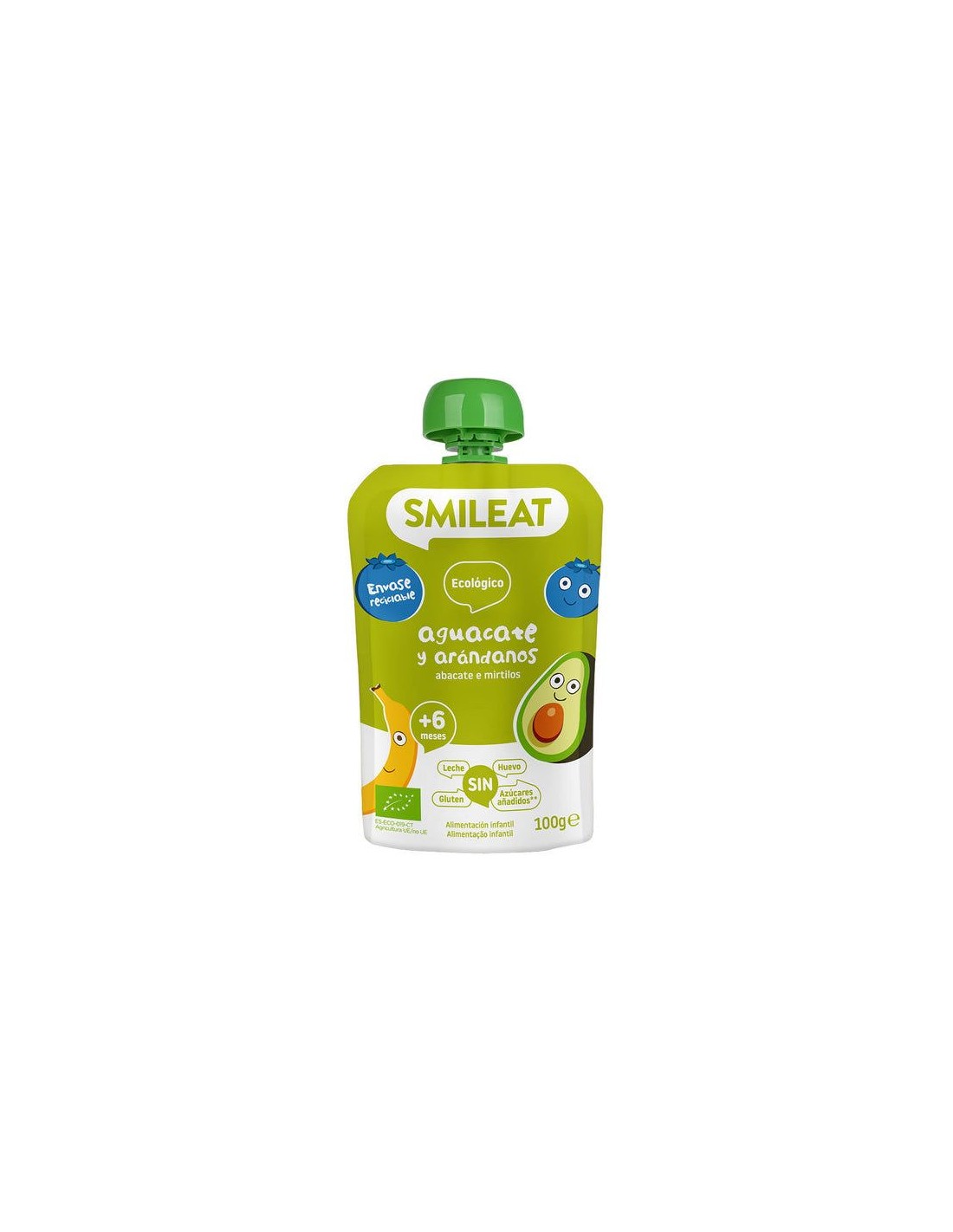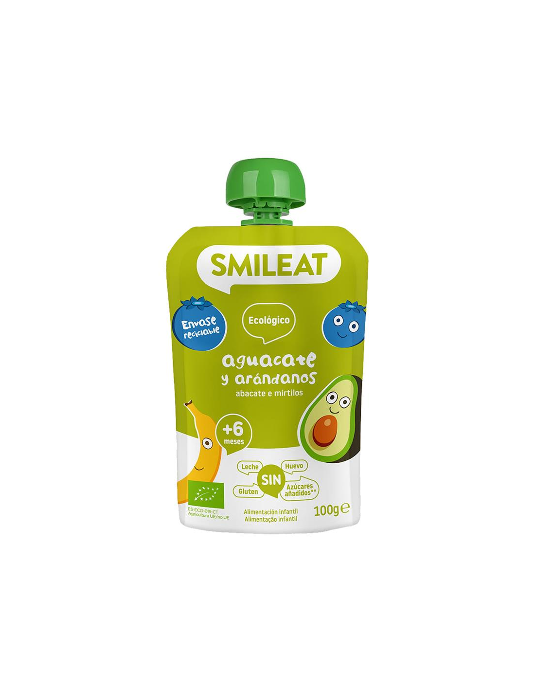 Pouch De Aguacate Y Arándanos Bio, 100 G de Smileat