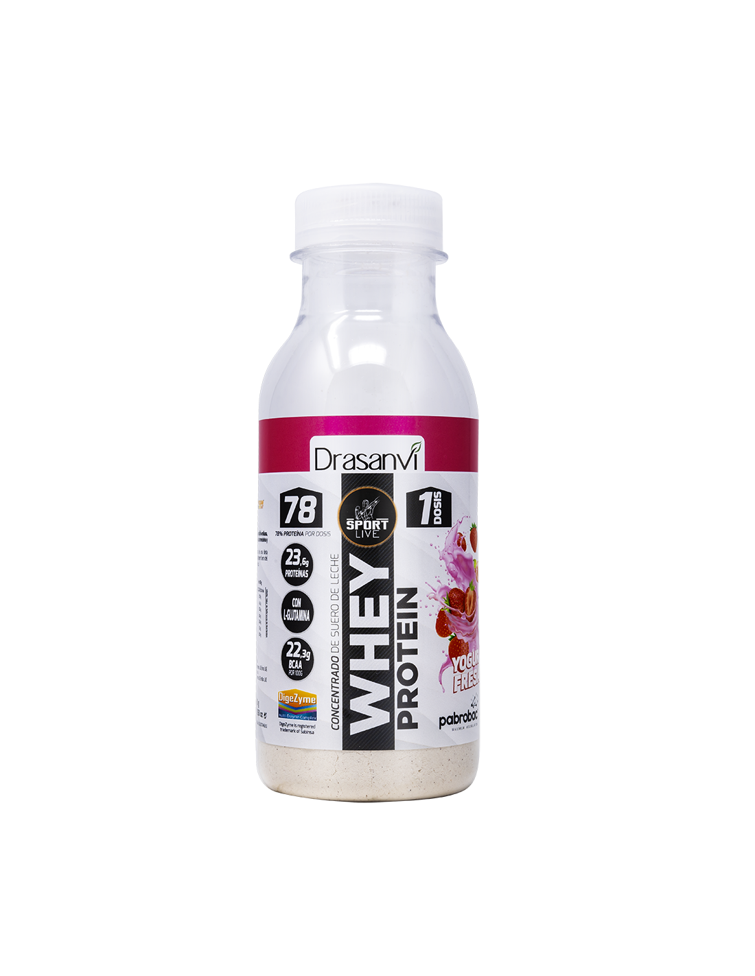 DRASANVI SPORT LIVECaracterísticas y Beneficios de la Botella Monodosis Whey Protein Concentrado Yogur Fresa 30G Sport Live Drasanvi