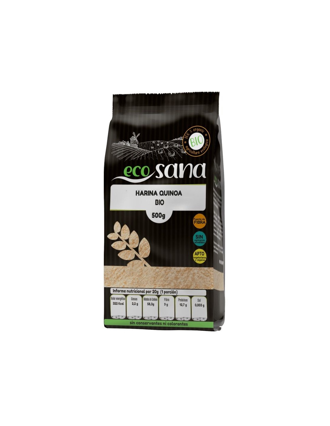 Ingredientes:Harina de quinoa blanca*. (*) Procedente de agricultura ecológica.Valor nutricional por 100 gramos: