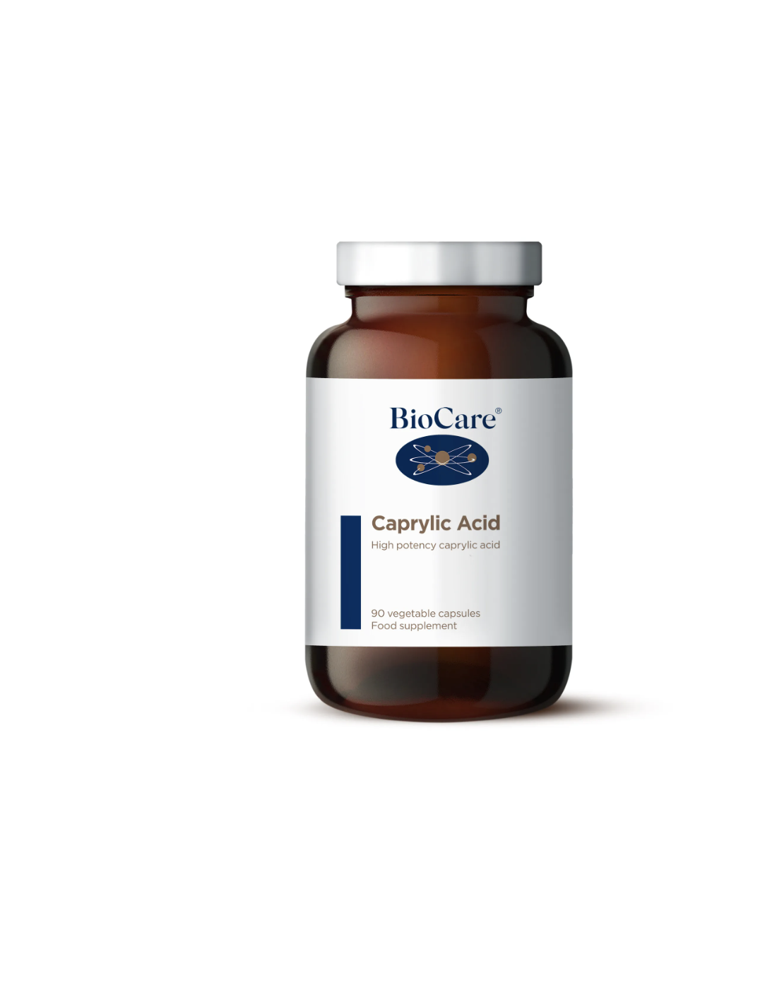 El ácido caprílico es un ácido graso de cadena media que se encuentra naturalmente en el aceite de coco y la leche materna. Su función principal es promover un ambiente interno saludable, especialmente en el sistema digestivo. Gracias a sus propiedades antimicrobianas, este suplemento ayuda a controlar el crecimiento de bacterias y hongos no deseados, favoreciendo una flora intestinal equilibrada y mejorando la digestión.