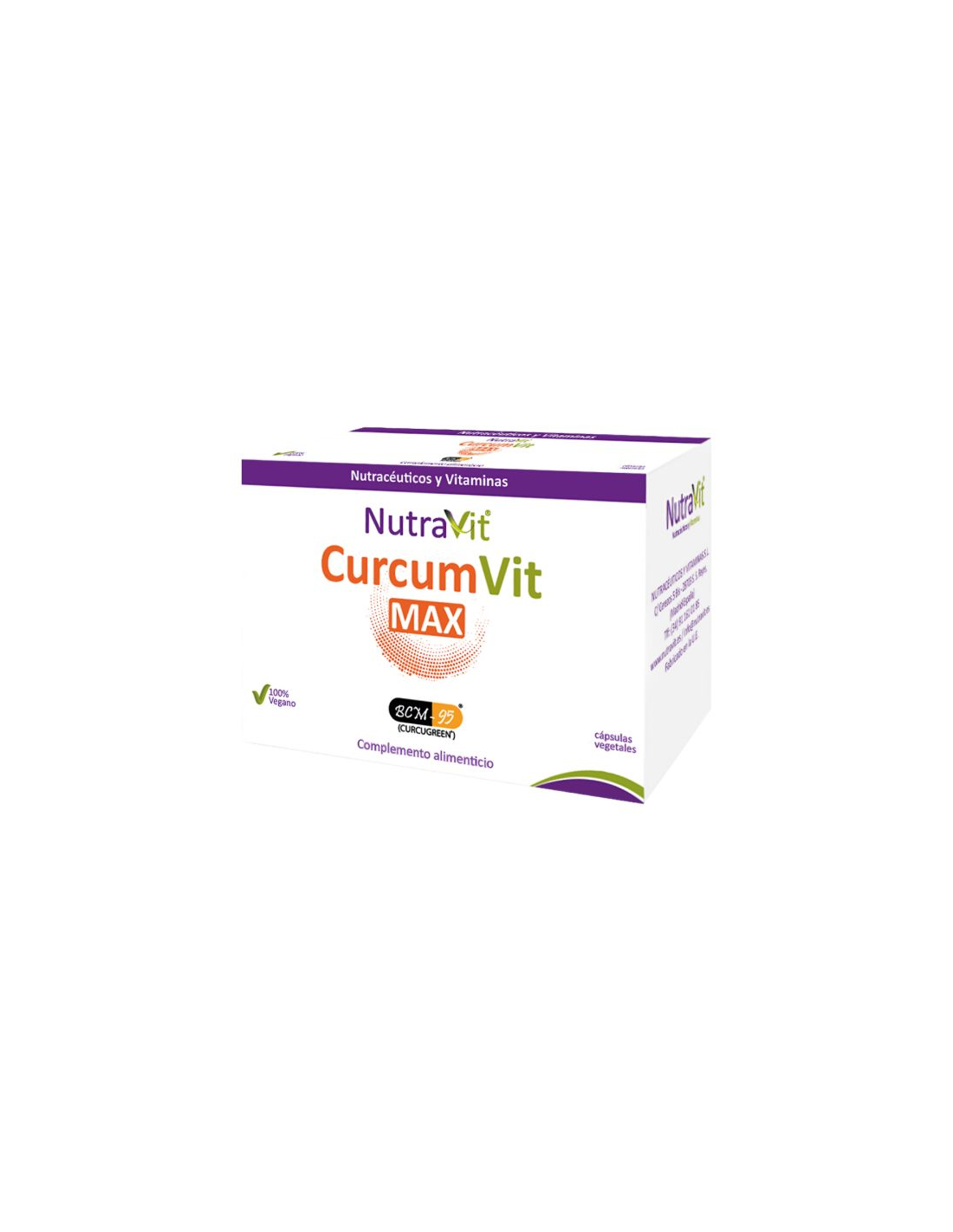 CurcumVit Max es un complemento Alimenticio a base de Cúrcuma BCM-95®, Extracto de Granada (40% ácido elágico, 40% punicalaginas), L-Lisina y L-Metionina. La Curcumina presenta efectos antiiinflamatorios, analgésicos, antioxidantes, antitumorales y antidepresivos. La Granada presenta un potente efecto antioxidante.Los aminoácidos Lisina y Metionina favorecen la absorción y solubilidad de la Cúrcuma y la Granada, mejorando así, su eficacia terapéutica.Beneficios: