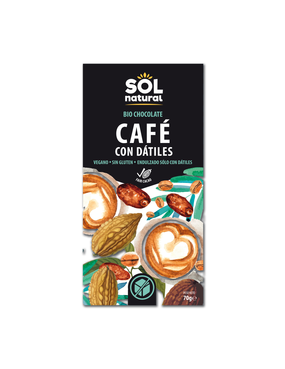 SOLNATURALCaracterísticas y Beneficios de la Tableta Chocolate De Café Con Dátiles Bio 70 g de Solnatural
