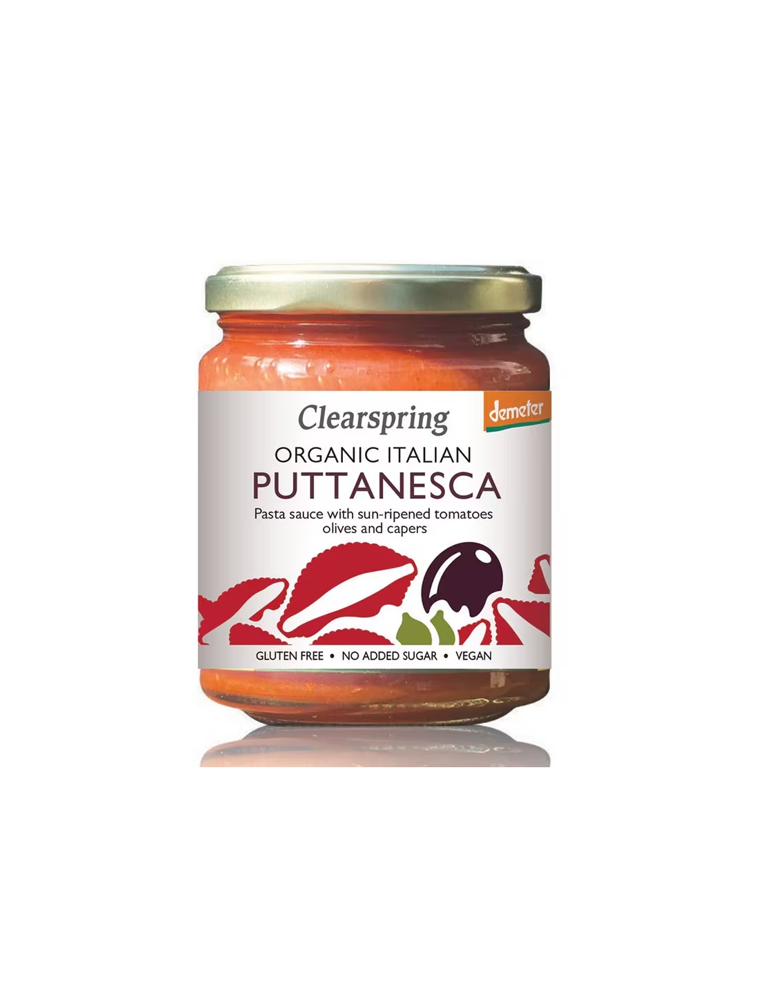 Descubre el sabor auténtico y tradicional de Italia con el Pack 6 Uds. Salsa Puttanesca Demeter Bio 300 g de Clearspring. Esta salsa es la opción perfecta para quienes buscan una experiencia culinaria rápida, saludable y deliciosa. Elaborada con ingredientes 100% orgánicos certificados por Demeter, esta salsa ofrece un sabor intenso y natural que transforma cualquier plato en una obra maestra gastronómica.
