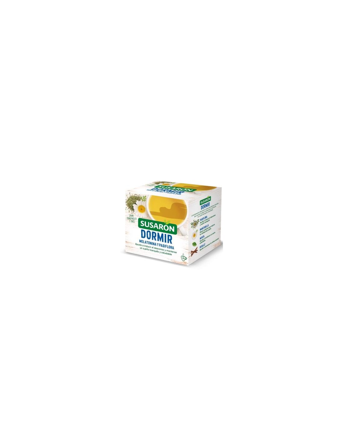 Infusión que combina melatonina, pasiflora, manzanilla y menta. La pasiflora y manzanilla tienen propiedades relajantes asociadas tradicionalmente. La meltanonina contribuye a reducir el tiempo necesario para conciliar el sueño. Con sabor a manzanilla y anís.
