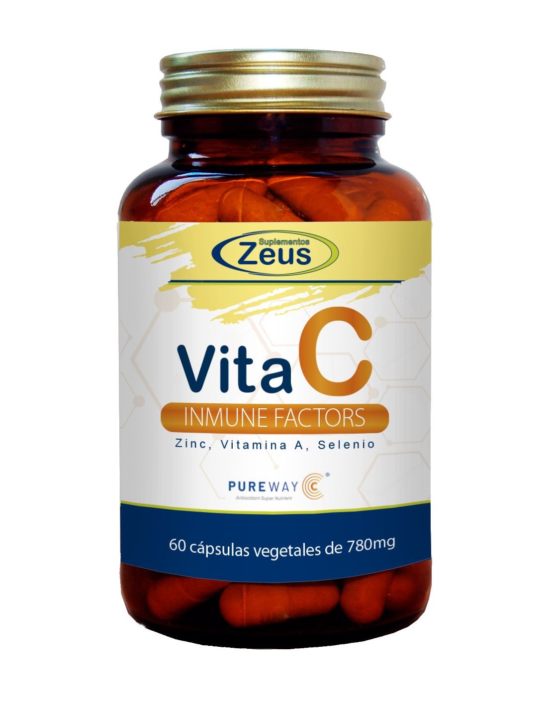 Vita C Inmune Factors de Zeus es un complemento Alimenticio a base de vitamina C - PureWay-C®, Selenito Sódico, Citrato de Zinc, Vitamina A (Palmitato