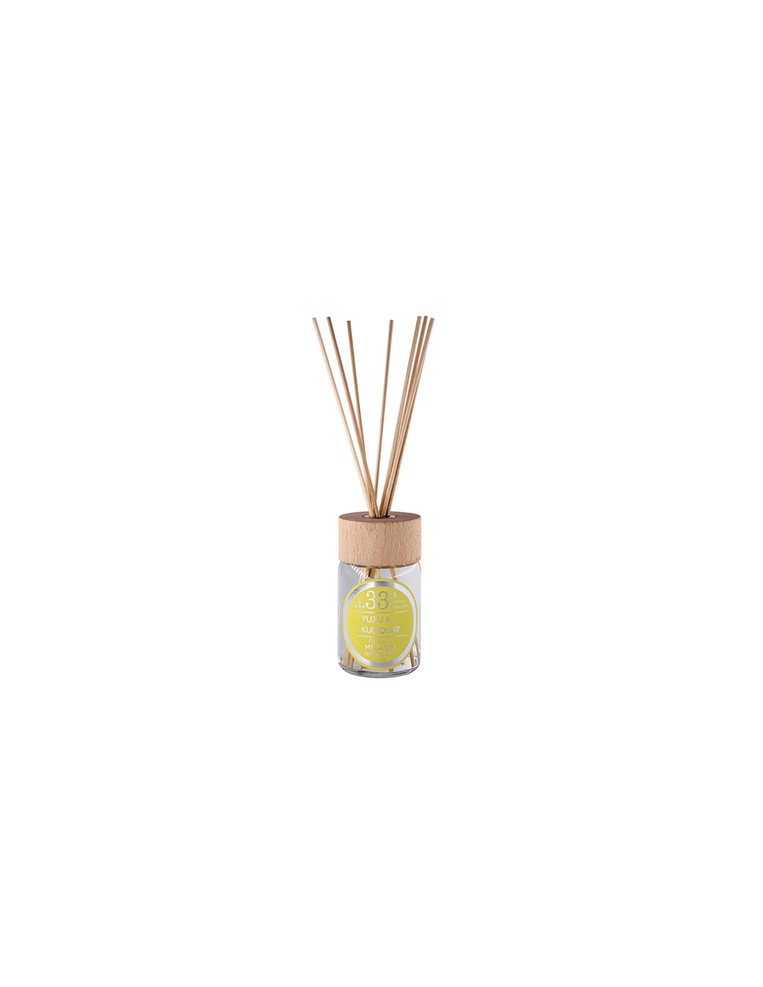 - Fragancia con notas de yuzu y kumquat que ofrece un aroma fresco y ligeramente cítrico, ideal para espacios interiores.