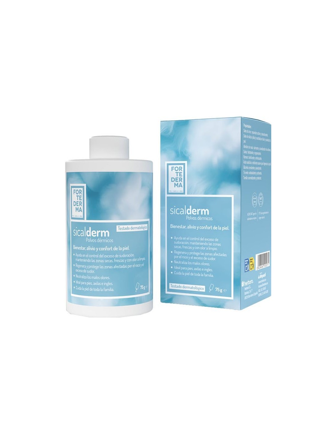 Los polvos dérmicos Sicalderm Fortederma ofrecen una solución para mantener un control de la sudoración y son aptos para toda la familia. Ayudarán a mantener secas las zonas habitualmente más propensas a la humedad y a neutralizar los malos olores que puedan aparecer, especialmente en los pies. Además, ayudan a formar una capa protectora que previene la fricción y las irritaciones en áreas sensibles.Los polvos dérmicos Sicalderm son esenciales para el cuidado diario de la piel, especialmente en áreas propensas a la sudoración excesiva. Contribuyen al bienestar y confort general del cuerpo, a la vez que ofrecen protección y cuidado para todos.Propiedades: