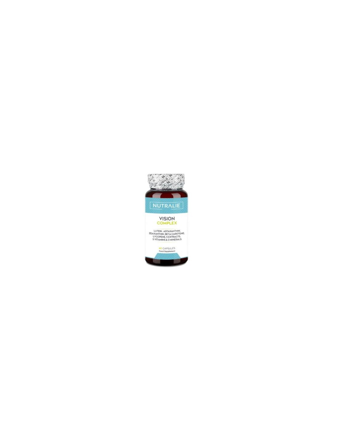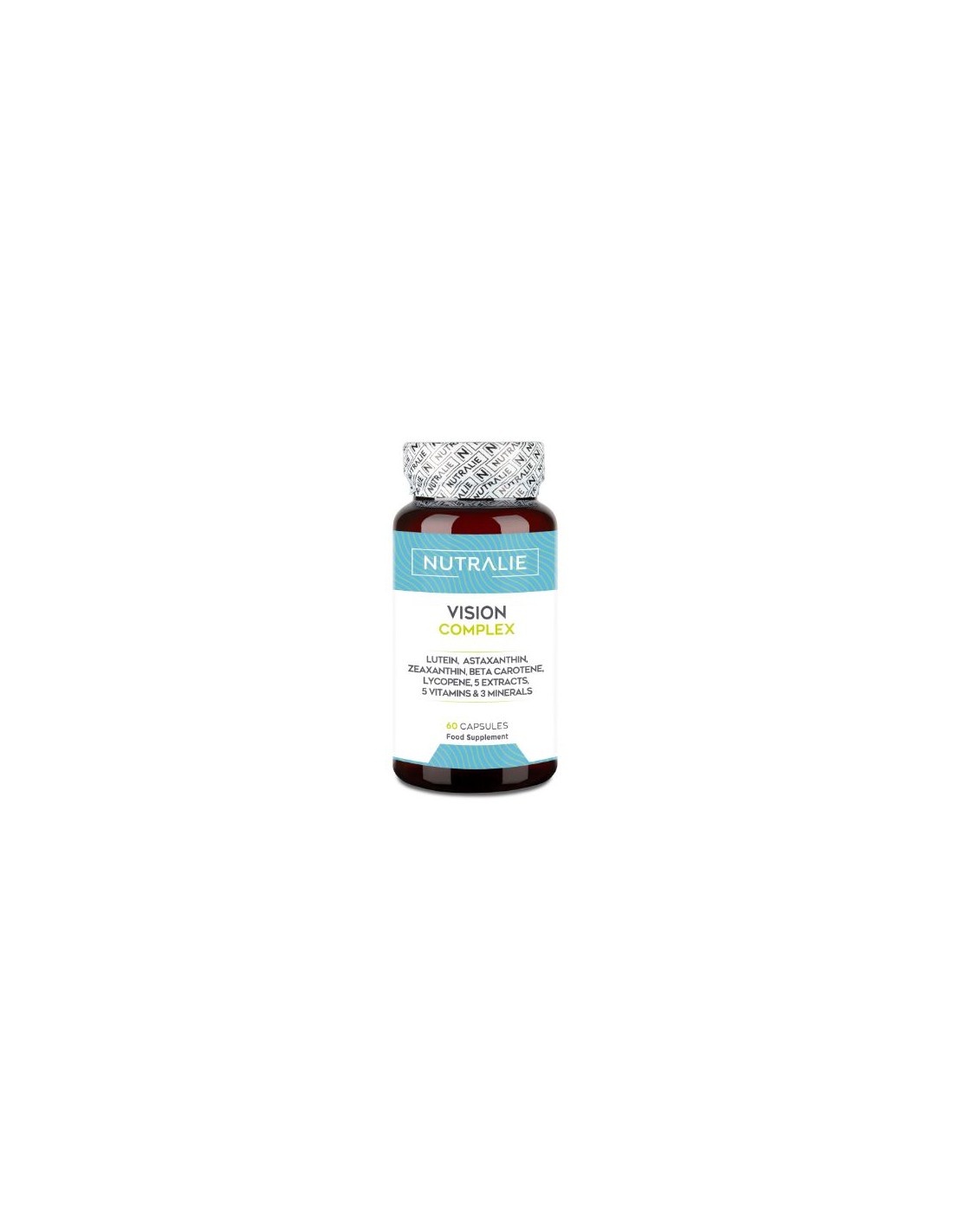 Visión Complex de Nutralie se ha desarrollado con el objetivo de contribuir en la mejora de la salud ocular frente al daño oxidativo, para actuar como filtro ante la luz azul, mejorar la agudeza visual en condiciones de poca luz y contribuye a aliviar la inflamación e irritación ocular.Los activos presentes en su fórmula Complex contribuyen a prevenir los problemas de sequedad e irritación ocular aliviando la inflamación.Esta fórmula Complex Best In One contiene 18 activos como la Luteína, Astaxantina, Zeaxantina, Betacaroteno, Aristotelia Chilensis, Mirtilo, Uva, Licopeno, Corteza de Pino, Espino Amarillo, Vitamina A, C, E, B1 y B2, Minerales (Zinc, Cobre, Selenio).Composición activa por 2 cápsulas: