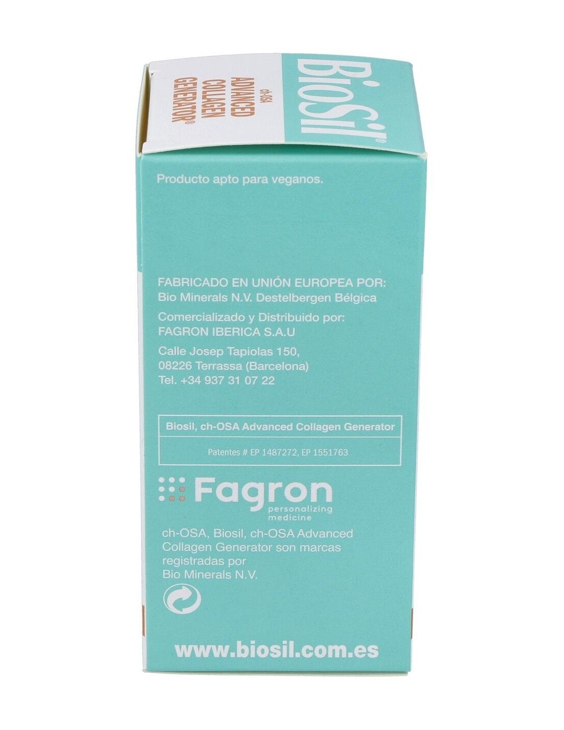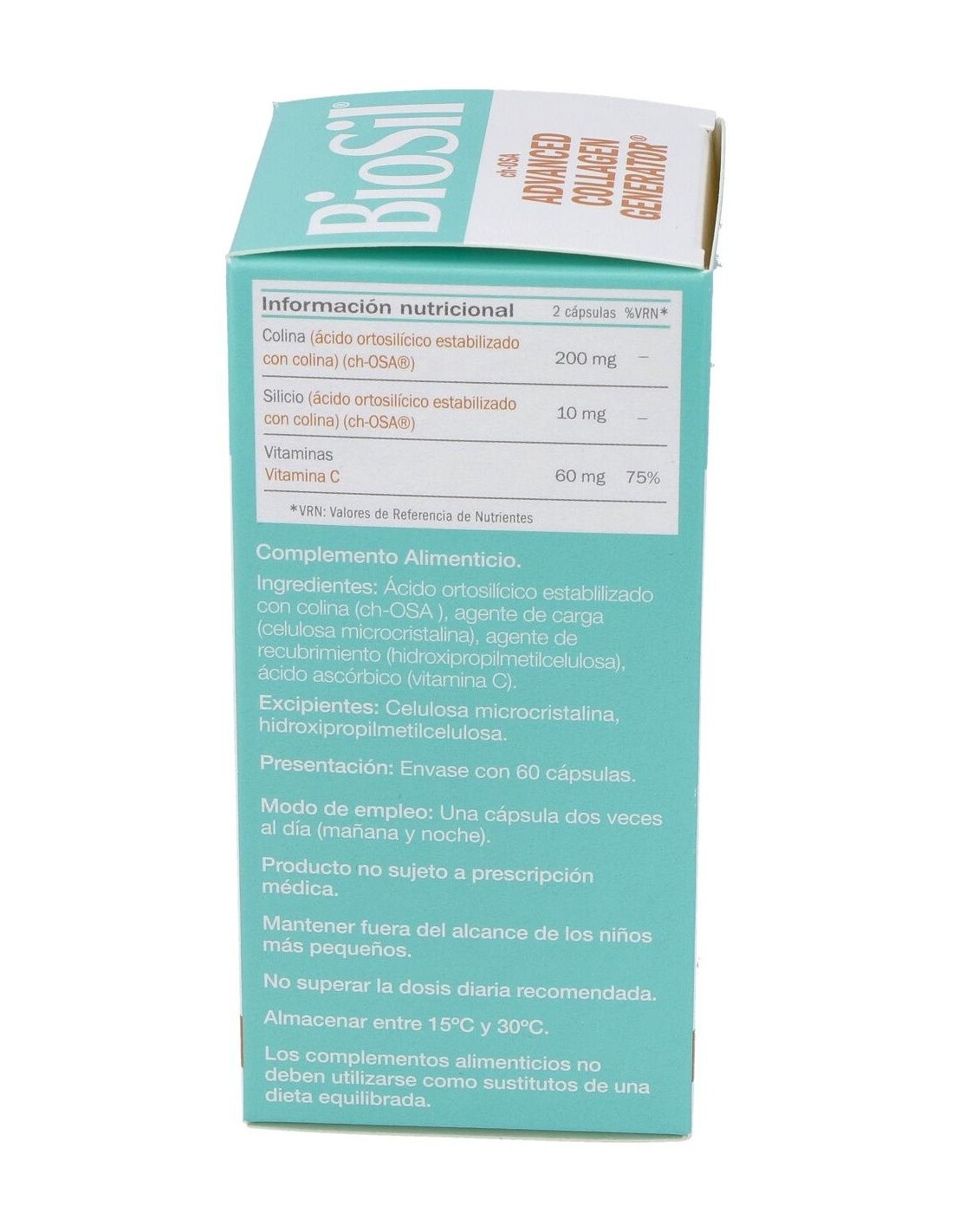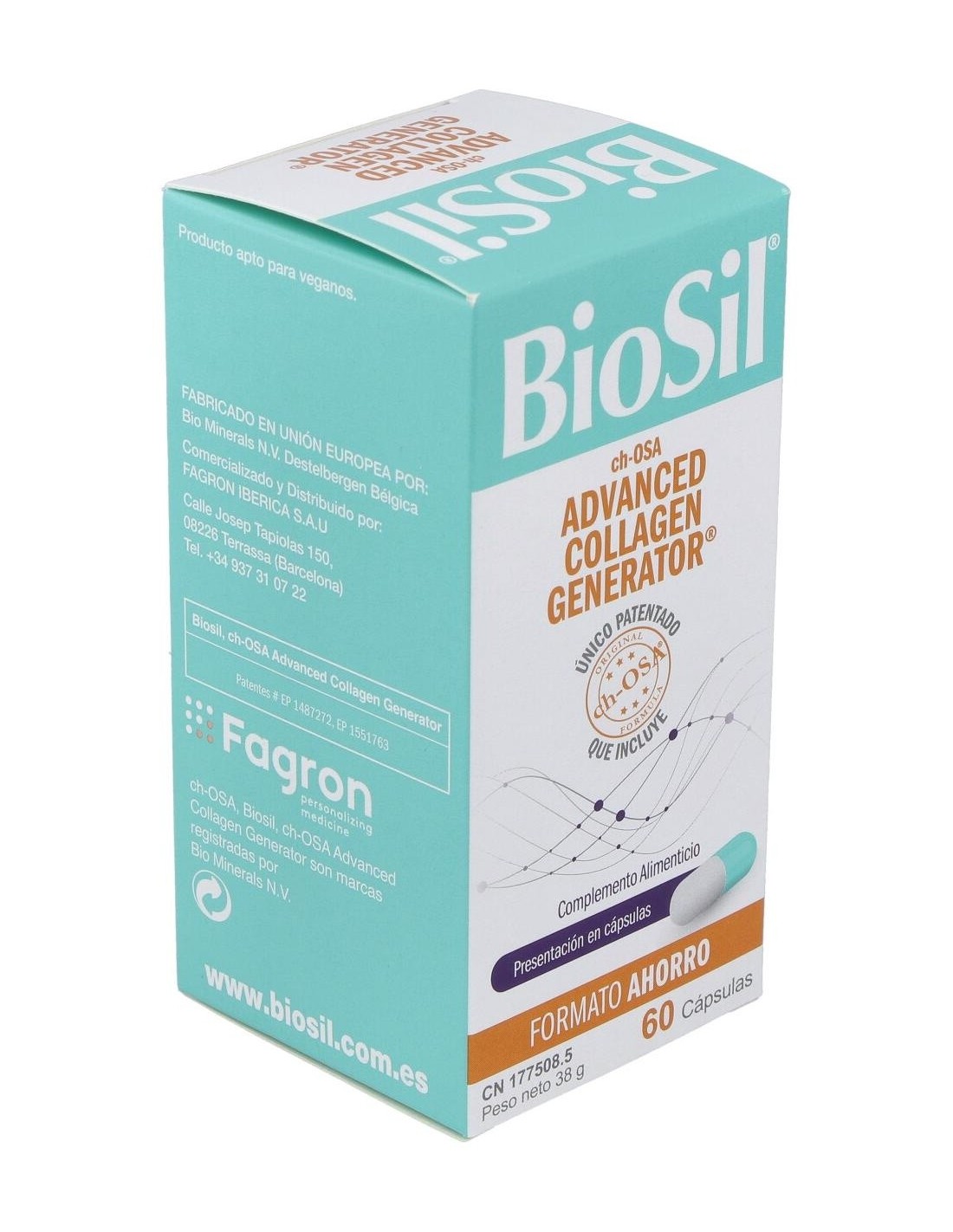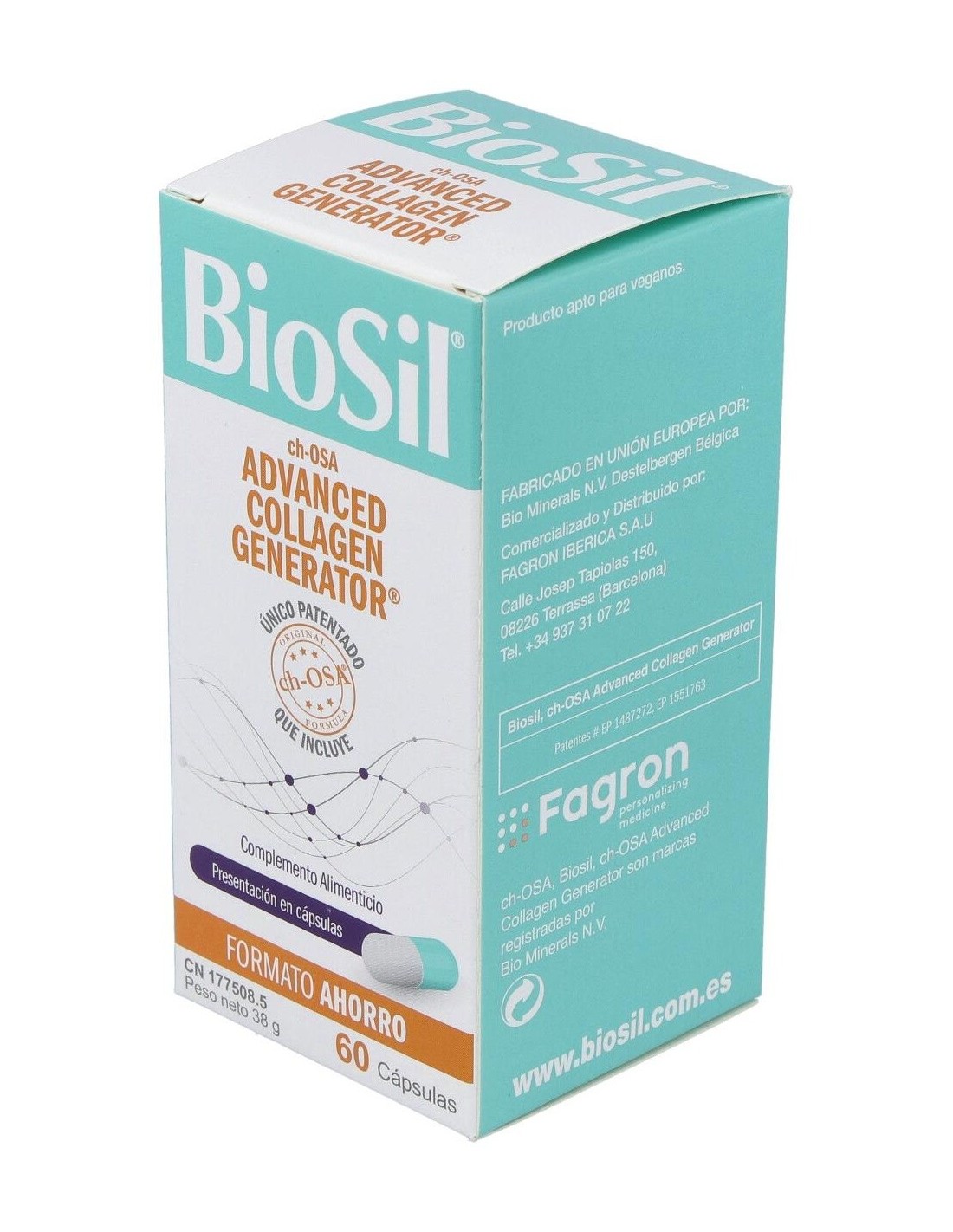 BIOSIL | BioSil 60cápsEl colágeno es una proteína que genera fibras muy resistentes y flexibles, las cuales forman parte de muchos tejidos de nuestro cuerpo: articulaciones, huesos, piel, músculos y tendones.Nuestro organismo produce colágeno, pero a partir de los 30 años pierde capacidad para generar esta proteína, por lo que las zonas que contienen colágeno empezarán a envejecer y se puede perder movilidad en las articulaciones o tersura en la piel.