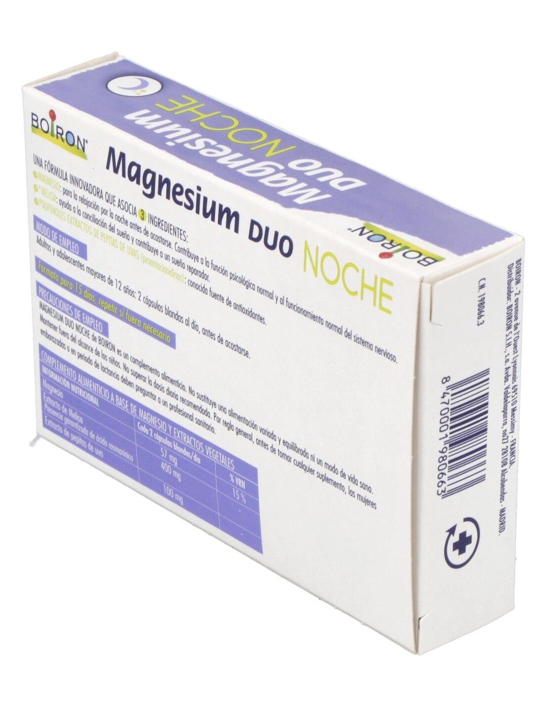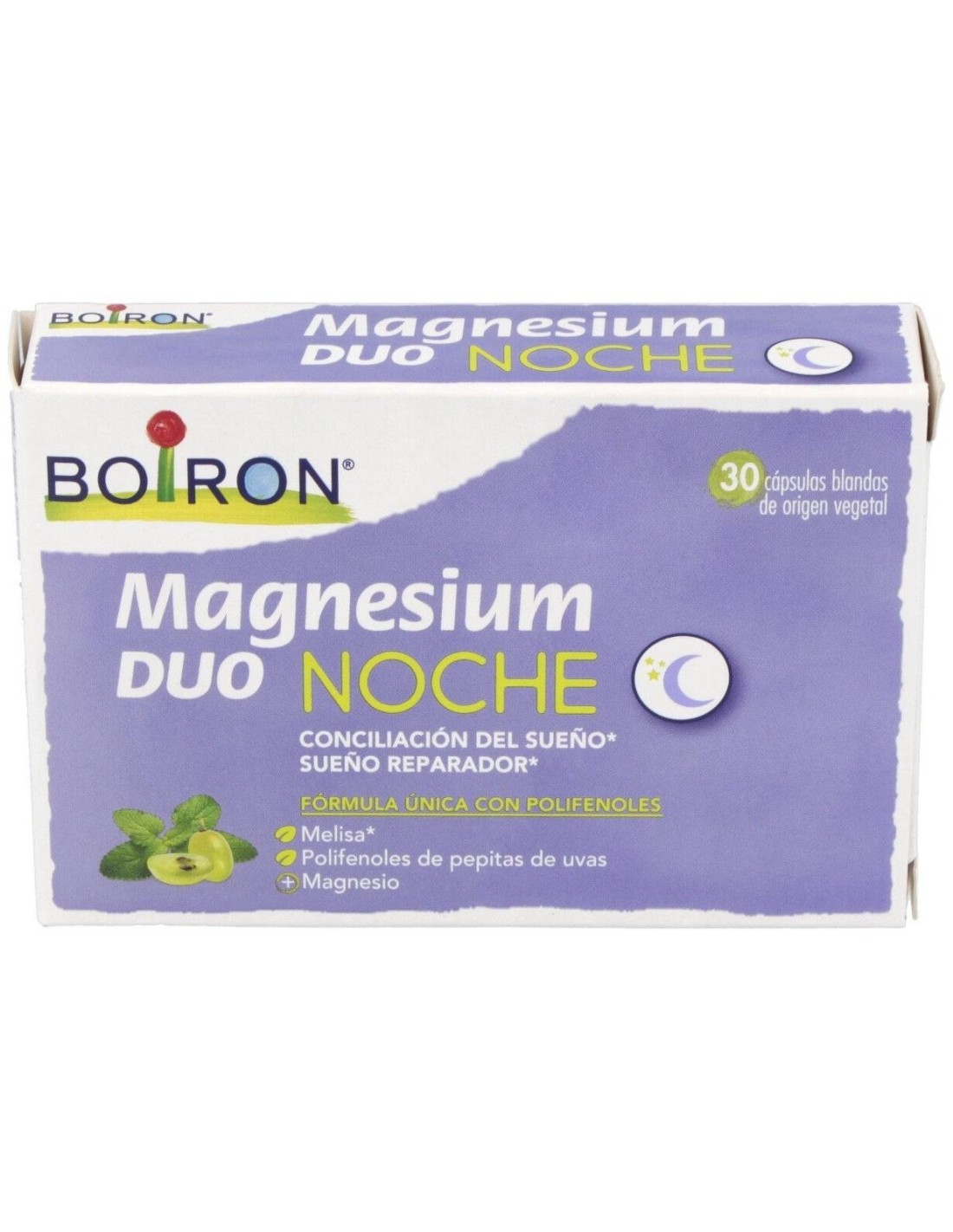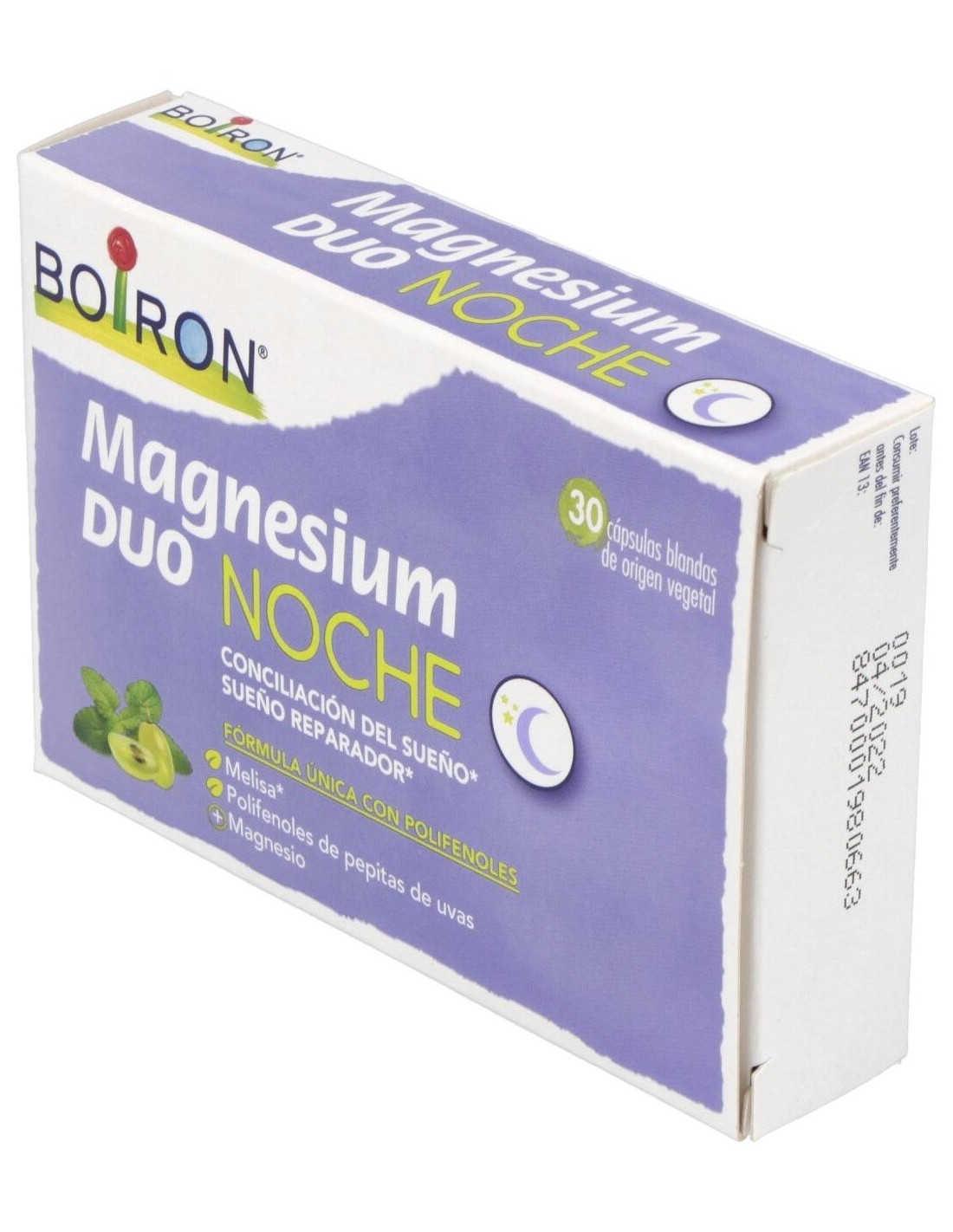 Magnesium Duo Noche 30Cap. de Boiron es un suplemento increíble diseñado para mejorar tu descanso y bienestar general. Gracias a su fórmula exclusiva, ayuda a relajar los músculos y calmar la mente, facilitando un sueño profundo y reparador. Ideal para quienes buscan un apoyo natural y efectivo para combatir el estrés y la fatiga diaria.