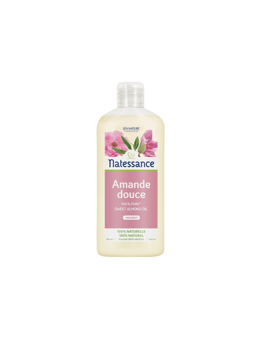El aceite de almendras dulces de Natessance está destinado a hidratar la piel de toda la familia. También es apto para masajes. También se puede utilizar en la elaboración de cosméticos caseros o para saponificación en frío. Finalmente, también es posible ingerirlo.Refuerza la película hidrolipídica que recubre la epidermis y protege la piel. Día tras día activa la reparación celular. Es particularmente útil para personas que padecen eczema o psoriasis. Alivia la irritación y el picor y previene infecciones bacterianas por sequedad de la piel.Al mejorar la elasticidad de la epidermis, previene las estrías y atenúa las cicatrices. 00% puro y sin perfume, es apto para todo tipo de pieles.Ingredientes:Aceite de almendras dulces; 0,% vitamina E natural (50% tocoferoles, 50% aceite de girasol).Modo de empleo:Aplicar diariamente en cara, manos y cuerpo.Presentación:Envase de 250 ml.