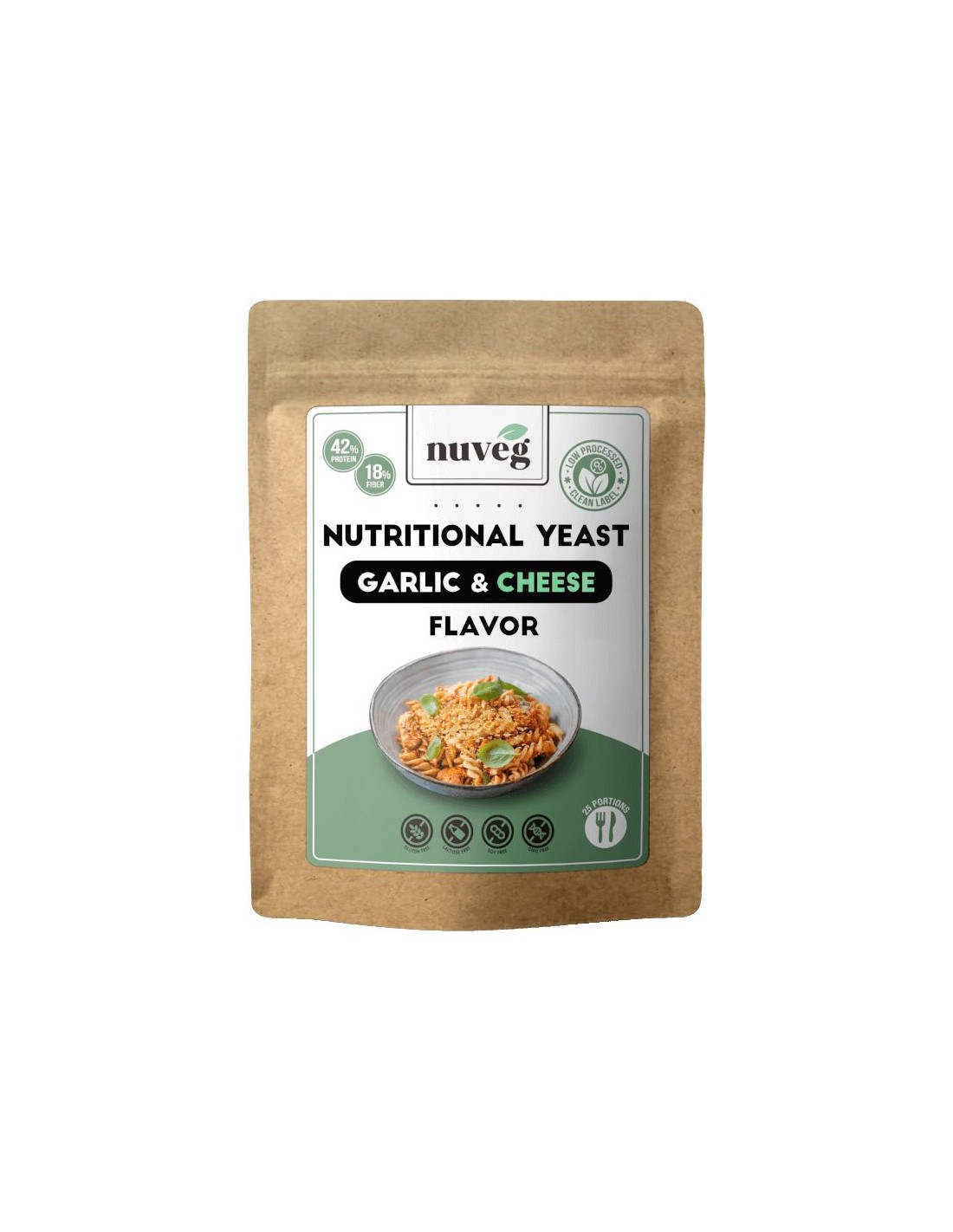 A diferencia de la más comúnmente comercializada levadura de cerveza, La Levadura Nutricional Sabor Ajo y Queso de Nuveg es un producto concebido para la alimentación humana, puro y limpio, libre de los residuos potencialmente tóxicos de la industria cervecera y con un delicioso sabor.La Levadura Nutricional Sabor Ajo y Queso de Nuveg es una fuente de proteínas, fibra dietética y vitaminas B. Puede consumirse directamente, utilizarse en recetas o espolvorearse sobre los alimentos y en las bebidas para obtener una mayor nutrición y realzar el sabor a ajo-parmesano. Una porción típica sería de 10-15 g.Descubre el secreto culinario que transformará tus comidas y beneficiará tu salud con nuestra Levadura Nutricional Sabor Ajo y Queso. ¡Un ingrediente que se convertirá en imprescindible en tu cocina!Propiedades: