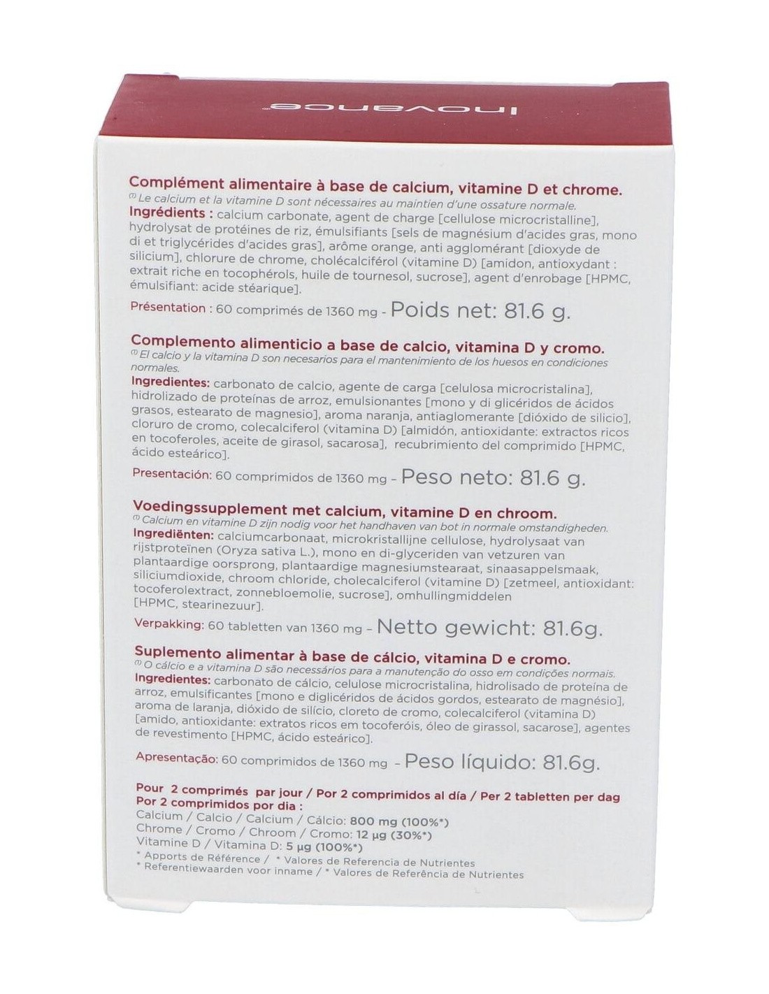 ¡Actúa ahora! Añade Calcium 60Comp. de Inovance a tu carrito y comienza a disfrutar de sus beneficios instantáneos. Tu cuerpo y huesos te lo agradecerán.