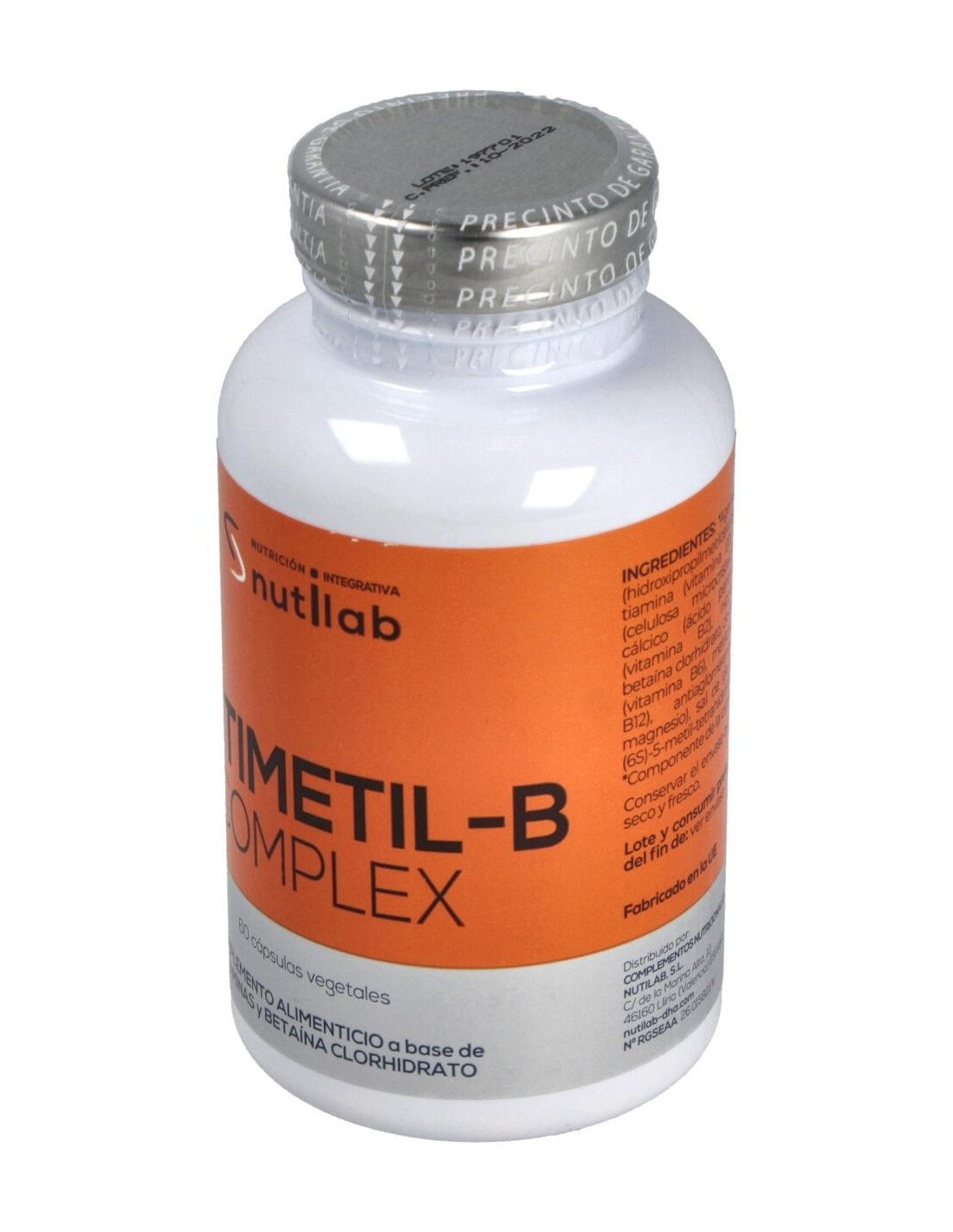 Nutimetil-B Complex 60Cap. de Nutilab ofrece una opción práctica para apoyar las necesidades nutricionales relacionadas con las vitaminas del complejo B, integrándose de manera sencilla en el cuidado diario.