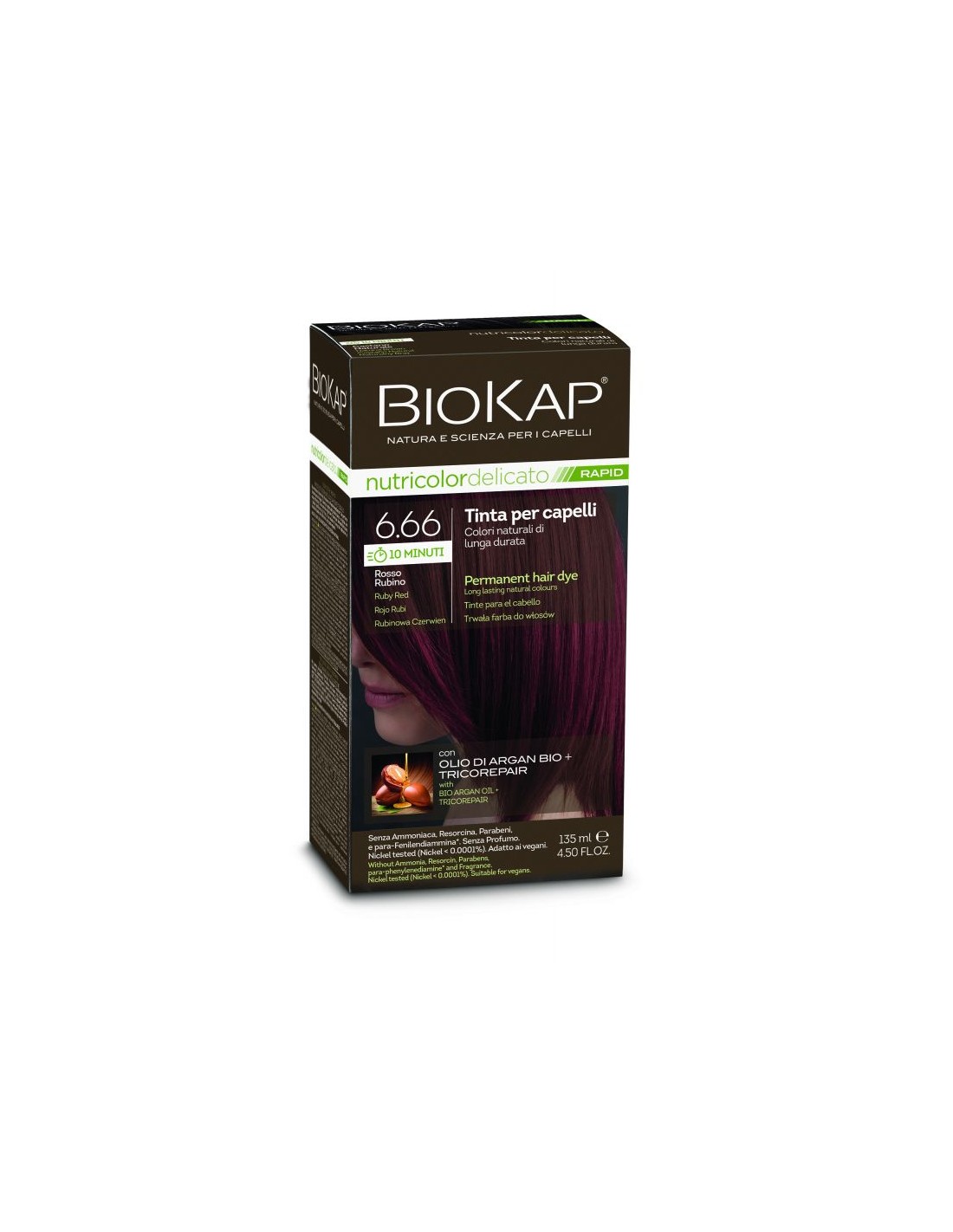 Descubre el increíble poder del Pack 12 Uds. Rapid delicato 6,66 Rojo Rubi de Biokap, una solución perfecta para quienes buscan un color intenso y duradero con resultados instantáneos. Este tinte exclusivo ofrece un tono rojo rubí vibrante que realza tu estilo de manera natural y brillante.