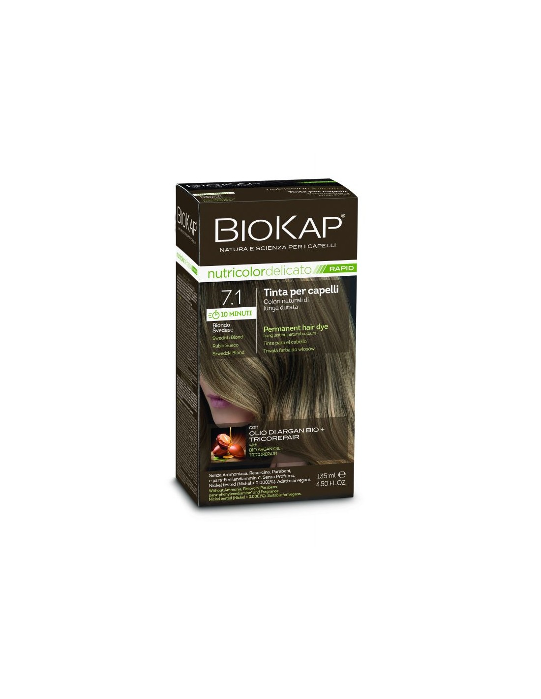 Descubre el increíble Pack 12 Uds. Rapid delicato 7,10 Rubio Sueco de Biokap, una solución práctica y eficaz para lograr un color de cabello radiante y natural en tiempo récord. Este tinte ofrece un resultado instantáneo que realza tu look con un tono Rubio Sueco luminoso y elegante.