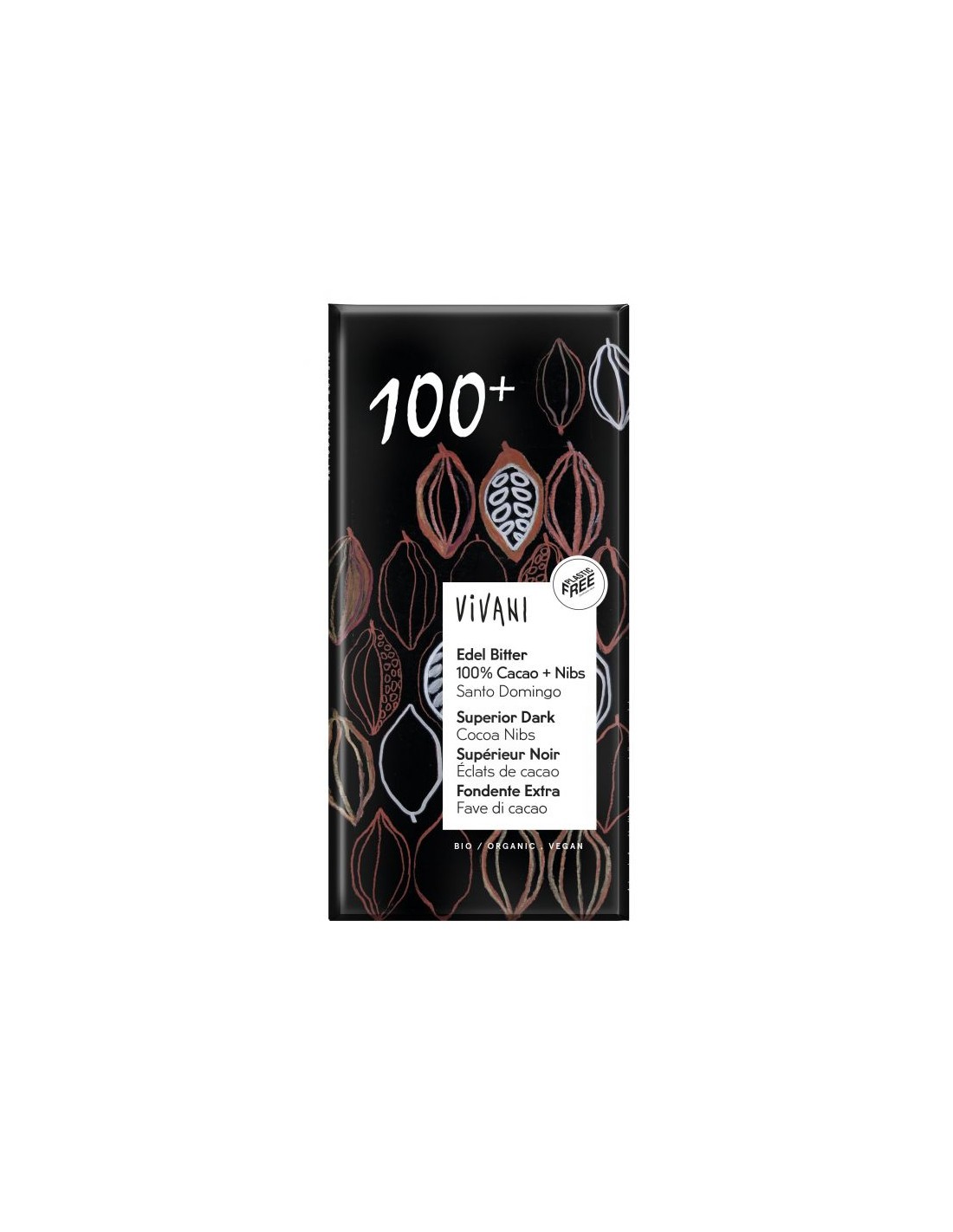 Características y Beneficios del Pack 10 Uds. Chocolate Negro Superior 100% Cacao Nibs de Vivani