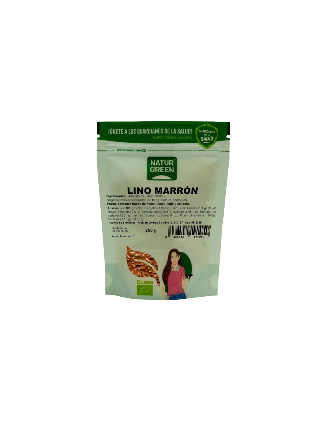 Lino Marrón Bio 250 g de NATURGREEN es una semilla natural y ecológica, perfecta para enriquecer tu dieta diaria. Rica en fibra, ácidos grasos omega-3 y antioxidantes, aporta beneficios para la salud digestiva y cardiovascular. Ideal para añadir a batidos, yogures, ensaladas o recetas caseras, su sabor suave y textura crujiente realzan cualquier plato. Producto 100% orgánico, sin aditivos ni conservantes, que garantiza calidad y pureza. NATURGREEN te ofrece una opción saludable y sostenible para cuidar de ti y del planeta.