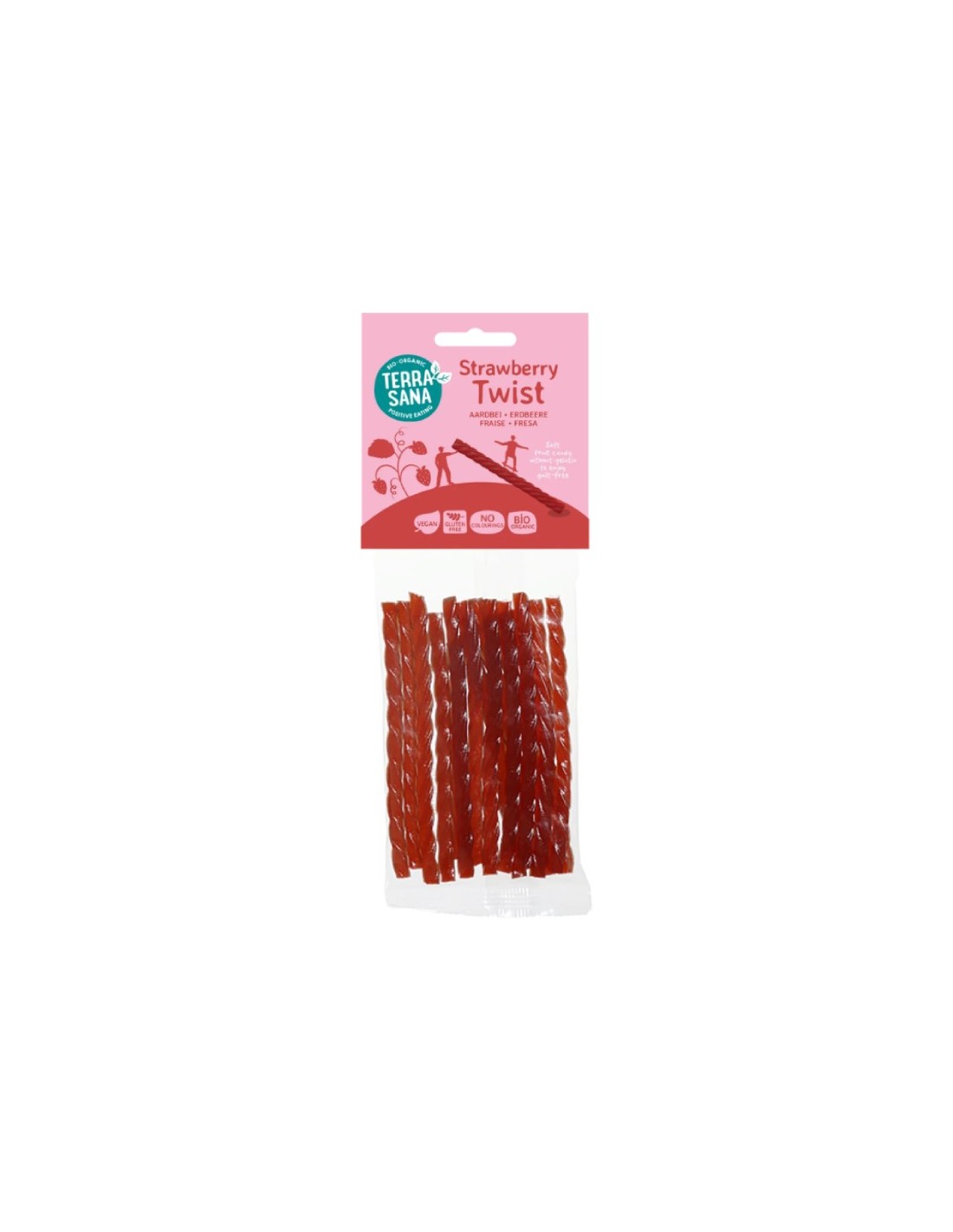 Disfruta de los Twists Regaliz Fresa de TERRASANA, un dulce natural que combina el sabor intenso del regaliz con el toque fresco y dulce de la fresa. Perfectos para quienes buscan un snack delicioso y diferente, estos twists son ideales para compartir o para darte un capricho en cualquier momento del día. Elaborados con ingredientes de calidad, ofrecen una experiencia única y auténtica que conquista a grandes y pequeños. Lleva contigo el sabor irresistible de TERRASANA y déjate sorprender por esta combinación llena de sabor.