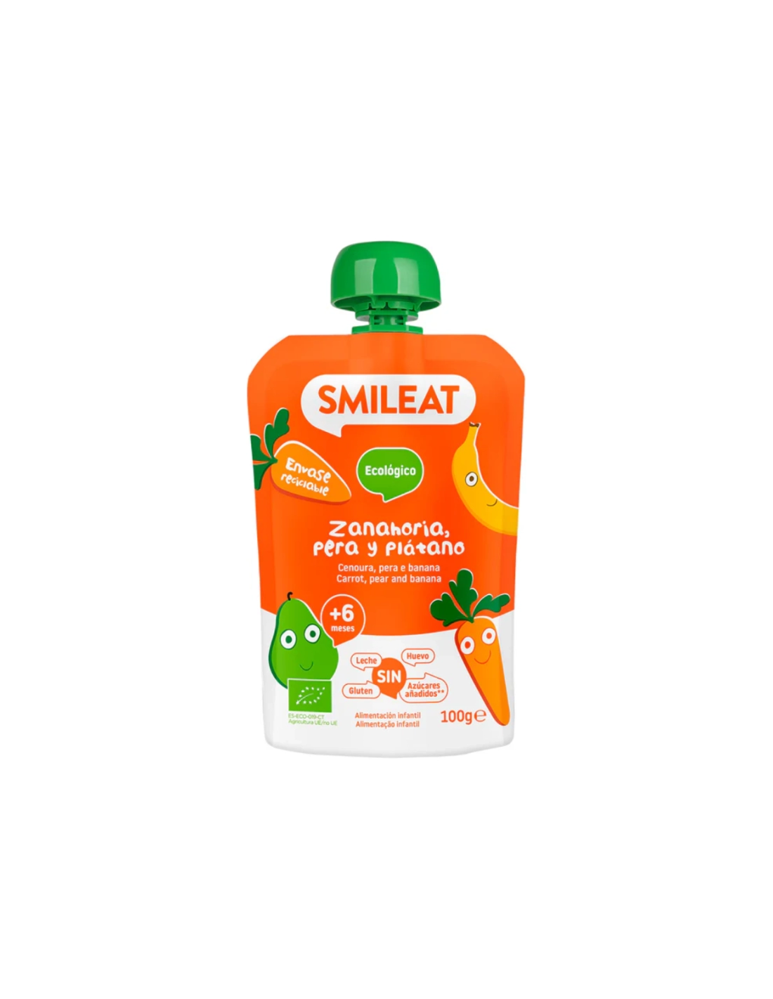 SMILEATCaracterísticas y Beneficios del Pouch De Pera, Zanahoria Y Plátano Bio, 100 G de Smileat