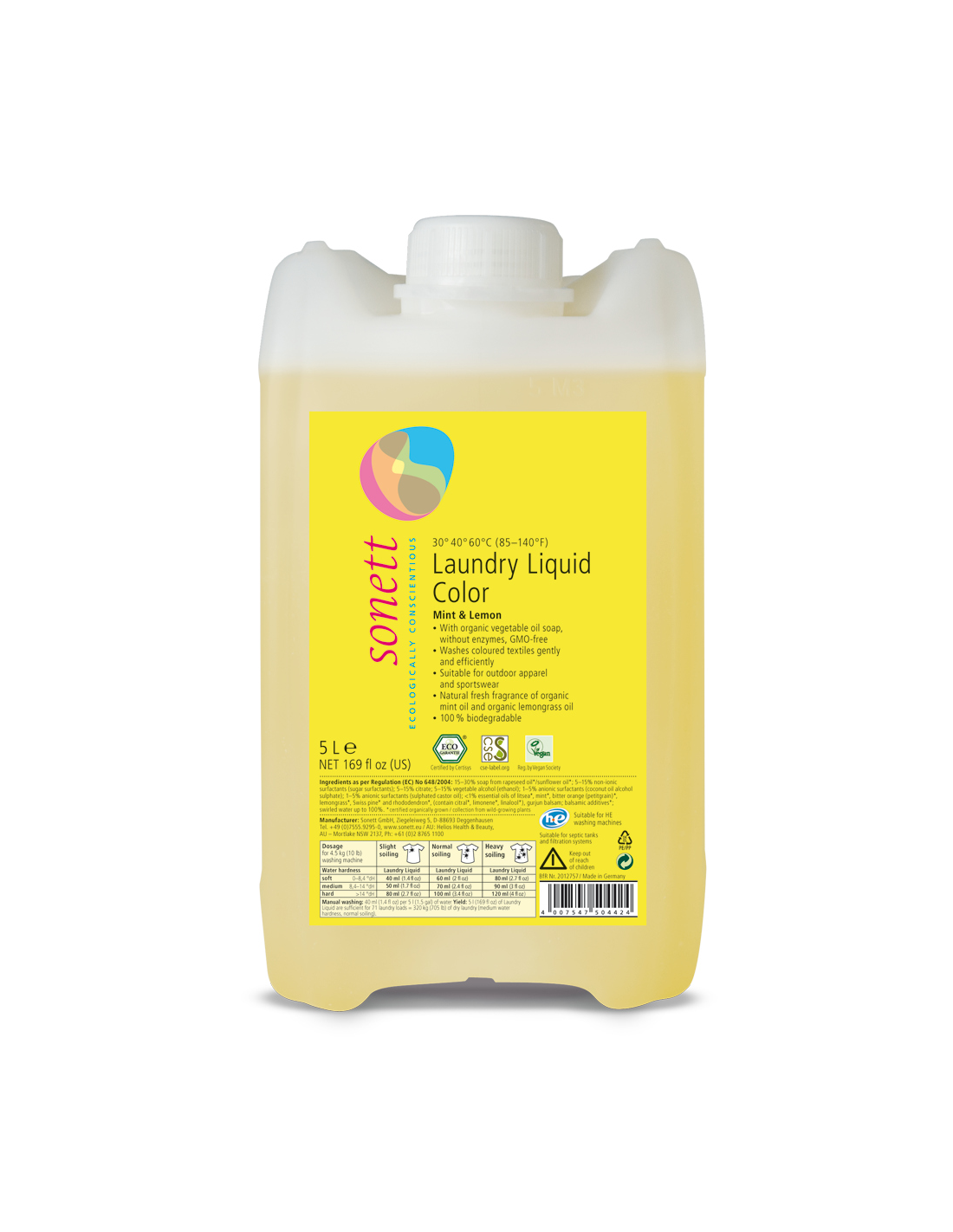 Detergente líquido ropa color, 5L de Sonett: Características y Beneficios Exclusivos