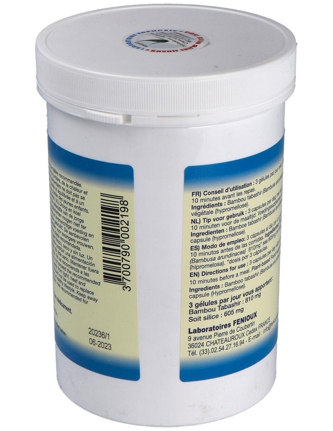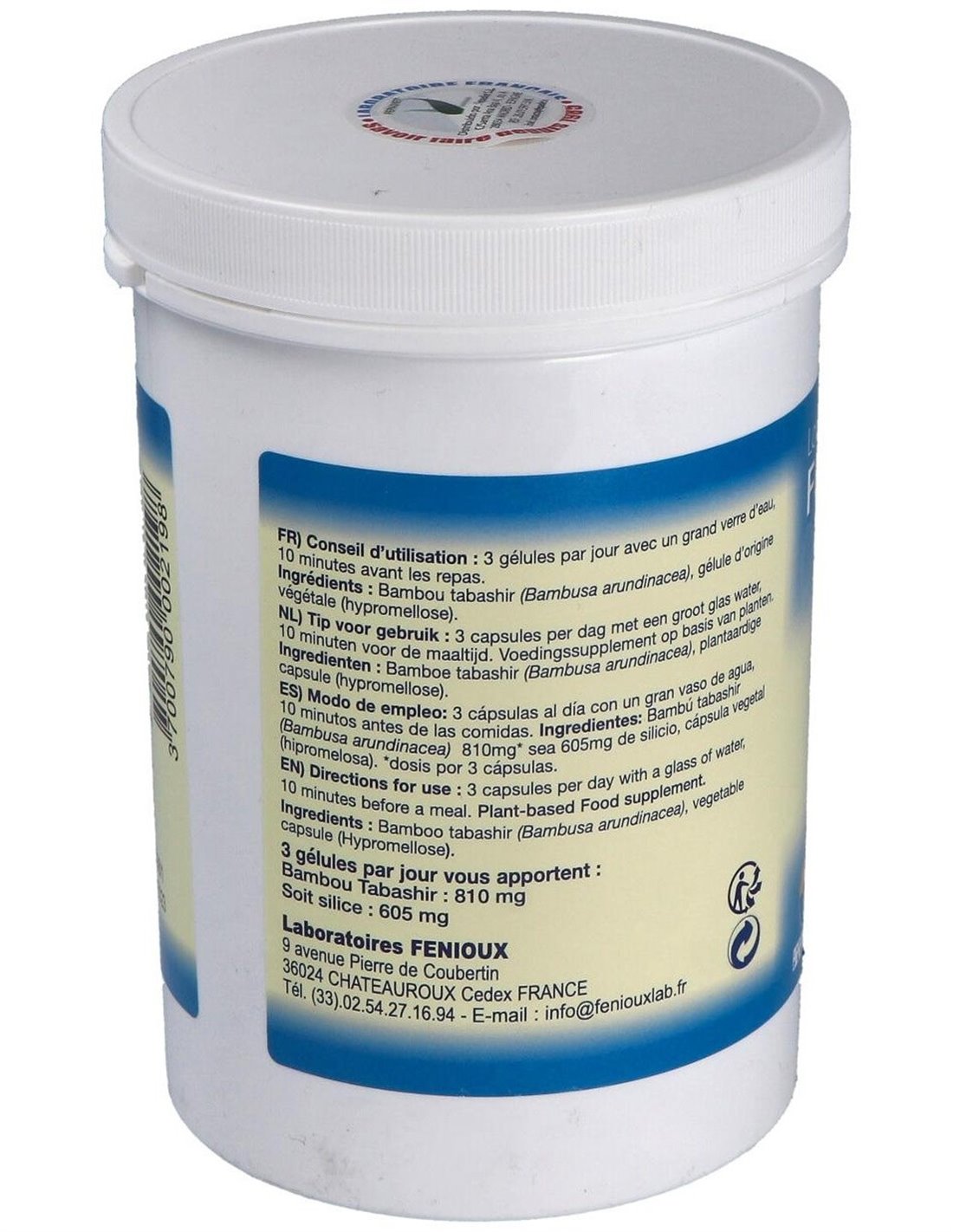 El Bambu Tabasir 540Cap. de Fenioux es un suplemento natural para adultos que contribuye al bienestar general, formulado con ingredientes seleccionados para apoyar el equilibrio corporal diario.